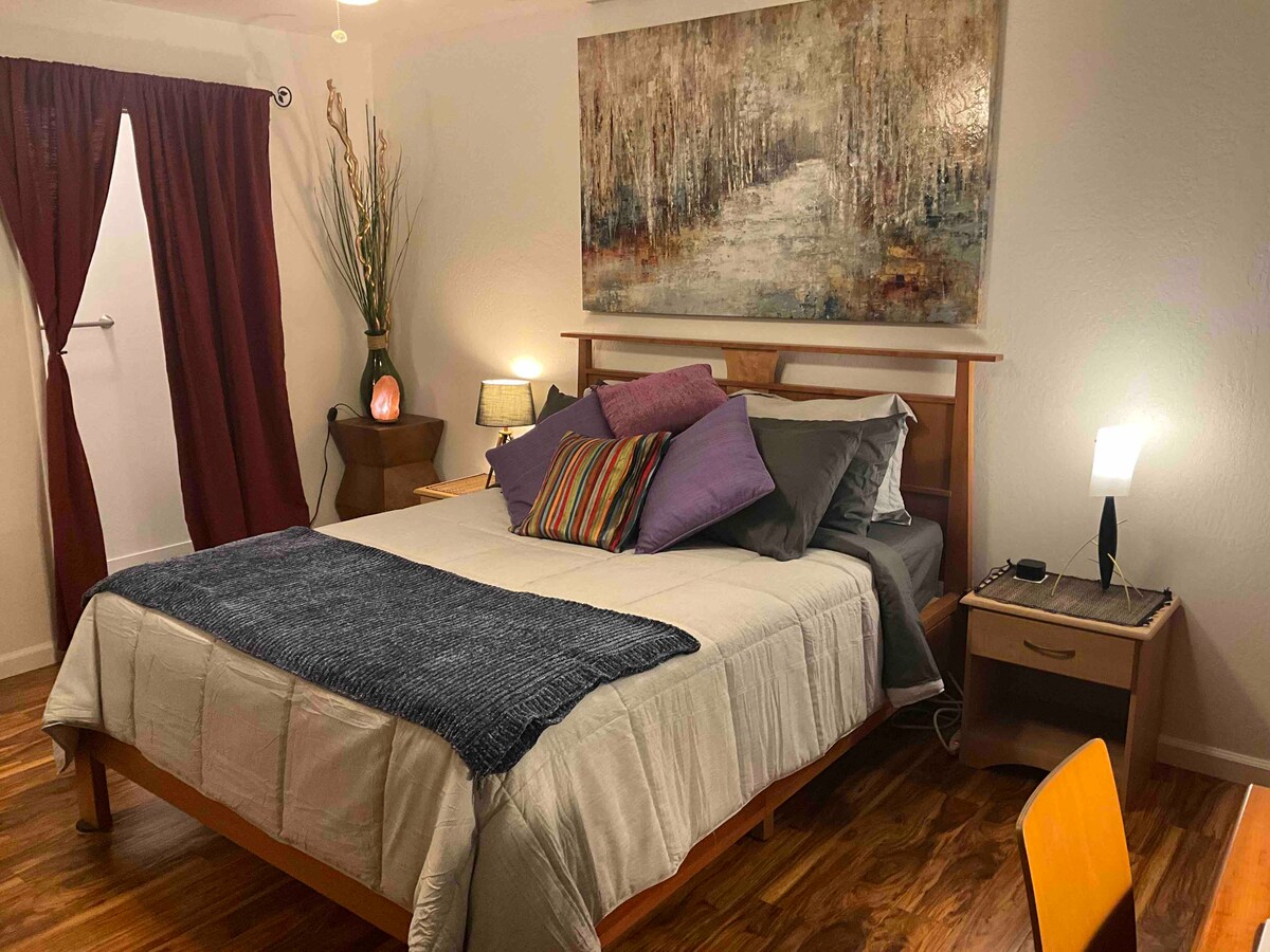 Ẩn mình giữa trung tâm Sacramento, studio quyến rũ của chúng tôi pha trộn các hạng mục nâng cấp hiện đại với phong cách Boho ấm cúng. Chìm vào chăn mềm và gối sang trọng khi bạn thư giãn trong không gian được thiết kế chu đáo của chúng tôi. Thư giãn trong áo choàng miễn phí khi bạn rúc vào giường xem những bộ phim yêu thích của mình trên máy chiếu kéo xuống. Một sân sau chung vẫy gọi với các khu vực phòng chờ hấp dẫn và một hố lửa kêu lách tách - hoàn hảo để tạo ra những kỷ niệm đáng nhớ. Khám phá các nhà hàng và cà phê gần đó với xe đạp để cho thuê.