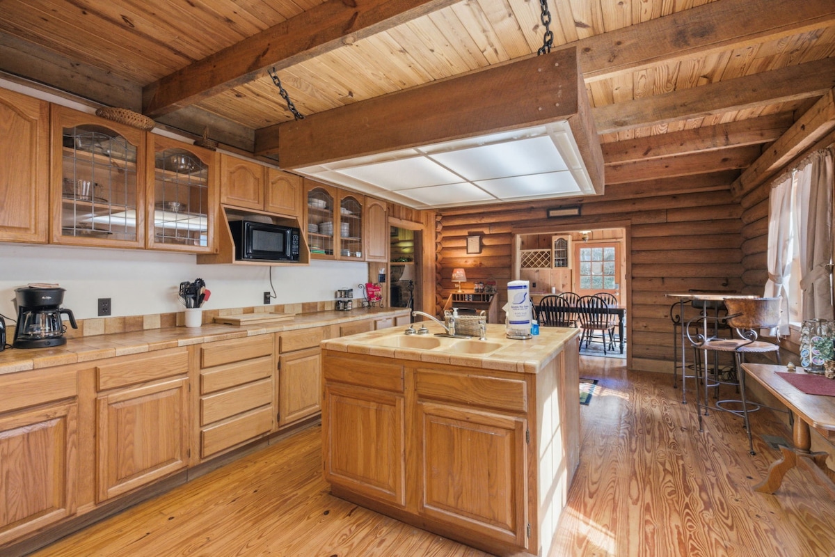 Unwind in our cozy Hochatown cabin featuring a heated pool, hot tub, fire pit, and outdoor TV—perfect for lounging and nights under pines. Inside, you’ll find a fully equipped kitchen, fireplaces, and a family-friendly layout with king suites and bunk beds—ideal for group getaways. ⭐ “Highly recommend this Airbnb to anyone with kids!” - Roxy 🌄 HIGHLIGHTS ✓ Heated pool for year-round use ✓ Hot tub, fire pit, TV lounge & playground ✓ Family-friendly w/ king suites & bunks