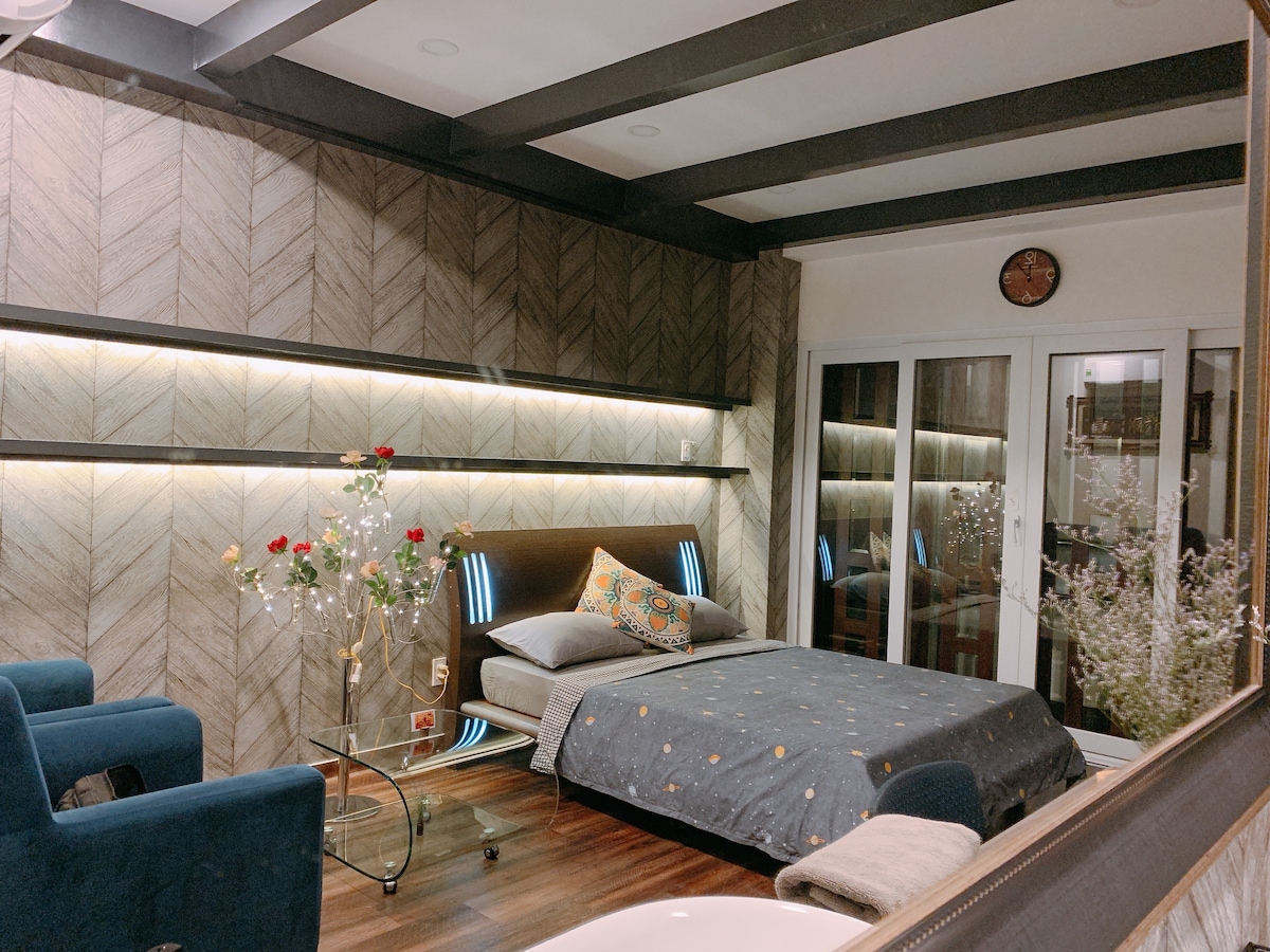 This is a cozy, modern studio with a garden view, just 05 minutes from Tan Son Nhat Airport, located in a quiet, secure residential area. Fully equipped with air conditioning, a kitchenette, a workspace, and a large smart TV, it offers a peaceful stay. Enjoy flexible check-in/check-out with a private automated door system. Just 20 minutes by taxi to Nguyễn Huệ Walking Street and near local restaurants and Hoang Van Thu Park for morning exercise.