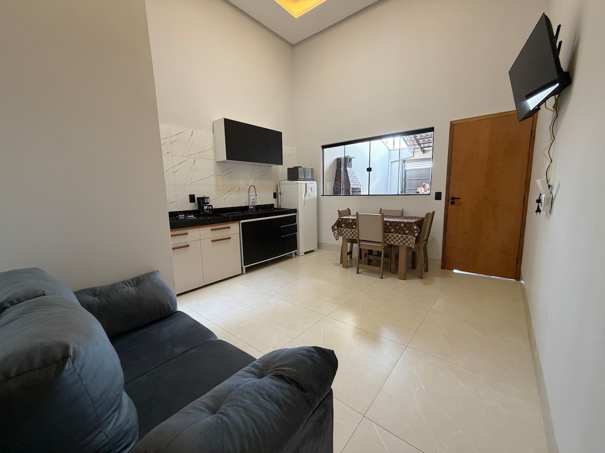 Tận hưởng một ngôi nhà ấm cúng, hiện đại, nhưng đồng thời với dấu vết của Goiás cũ, nhiệt độ bên trong rất dễ chịu, ở trung tâm và gần mọi thứ, khí hậu bên trong nhưng đồng thời gần một số cửa hàng, cửa hàng và nhà hàng. Nó có tính năng tự nhận phòng và cũng có khóa điện tử trên cửa ra vào, và bạn có thể sử dụng thẻ hoặc mật khẩu để mở nó, ngoài cổng điện tử và bảo mật siêu gia cố. Giảm giá lên đến 20% cho thời gian ở trên 7 ngày. Hãy tận hưởng!