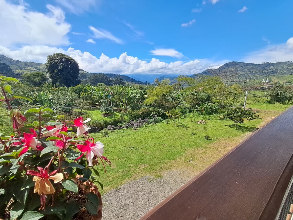 Lựa chọn chỗ ở tuyệt vời tại một trong những thị trấn đẹp nhất Colombia với mùi cà phê; đi kèm với tầm nhìn đẹp ra núi; nằm gần các điểm tham quan thiên nhiên đẹp và du lịch, chẳng hạn như vũng nước, thác nước, khu bảo tồn thiên nhiên và rặng núi Khách được mời tận hưởng không gian xinh đẹp này, đồng thời tận hưởng phong cảnh tuyệt vời do khu vực kỳ diệu của vùng Tây Nam Antioquia này mang lại. Chúng tôi hy vọng rằng thời gian lưu trú của bạn sẽ khó quên, hãy quyết định ở lại lâu hơn và sớm trở lại.
