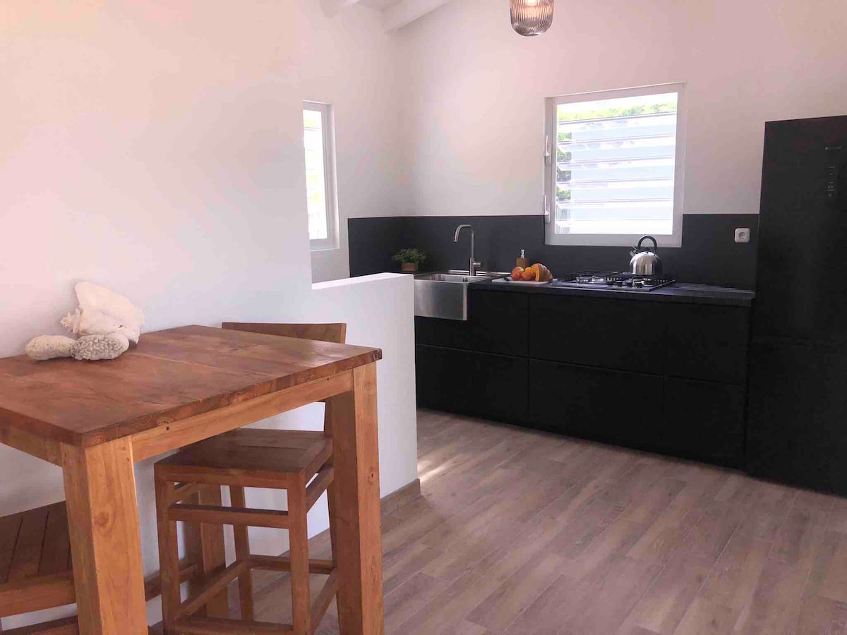 Completely new suite with an oceanfront view. You will be able to experience some of the most beautiful sunsets on the island firsthand! Outside facilities include a gazebo, hammock and dock providing easy access to the ocean, ideal for swimming. Kayaks and snorkeling gear are also available free of charge! Located at a relatively quiet part of the island, known as a prominent fishing area. Some of the best seafood restaurants are located on the same street (Zeerovers and Flying Fishbone).