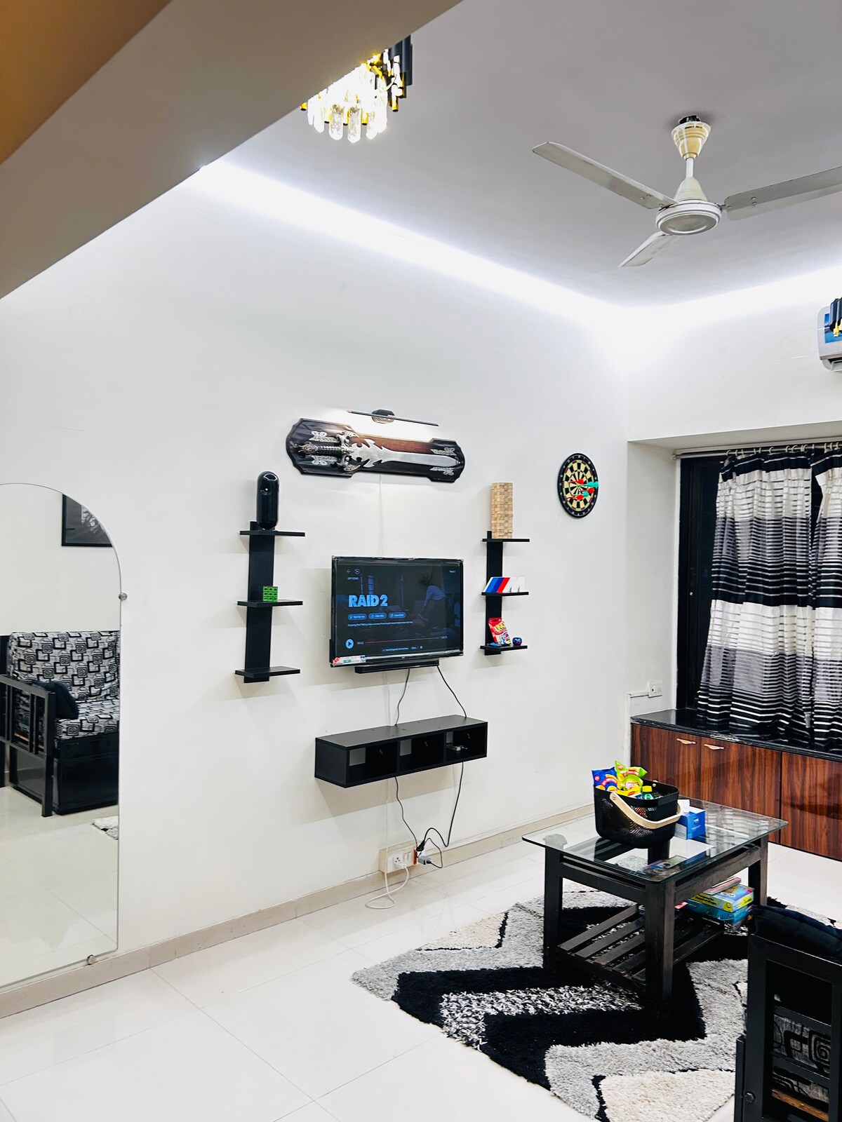 A calm, spacious 1BHK overlooking the mangroves, with open sunset views and rare quiet for Lokhandwala. The home has a bright living room with a 50” 4K smart TV, sofa-bed for extra guests, and large windows that fill the space with light. A fully equipped kitchen suits both short and longer stays comfortably.