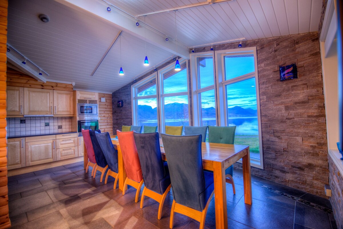 Biệt thự Aurora tuyệt vời là nơi hoàn hảo cho chuyến đi theo nhóm của bạn. Hãy thoải mái trong chỗ ở theo nhóm được trang bị đầy đủ tiện nghi của chúng tôi cho tối đa 11 người trong 5 phòng ngủ. Khu vực sảnh chờ với cửa sổ toàn cảnh lớn và cửa sổ trời trên mái nhà cho phép bạn ngắm mặt trời nửa đêm vào mùa hè và Ánh sáng phương Bắc vào mùa đông. Tất cả các phòng ngủ đều có lối đi thẳng lên sân thượng để trải nghiệm khung cảnh tuyệt đẹp trên vịnh hẹp, núi non và bầu trời đêm. Thiết lập máy ảnh của bạn và chờ chương trình ánh sáng ma thuật.