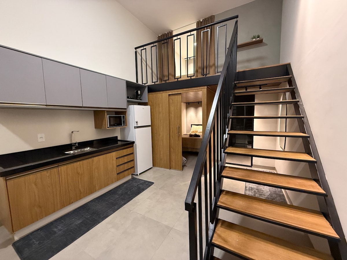 * Tầng lửng cao cấp ở trung tâm thành phố Andradina * Theo dõi @loftandradina - 2 phòng ngủ có giường đôi có ga trải giường. - 1 giường sofa, lý tưởng cho chỗ ở bổ sung. - Bãi đỗ xe riêng. - Phòng tắm riêng, hiện đại và đầy đủ tiện nghi. - Nhà bếp và phòng khách tích hợp, với tất cả các dụng cụ cần thiết tối thiểu. - Điều hòa nhiệt độ 24.000 BTU. - Cách Công viên Acqualinda 3 phút, gần các nhà hàng chính của thành phố. - Được phép mang theo thú cưng nhỏ.