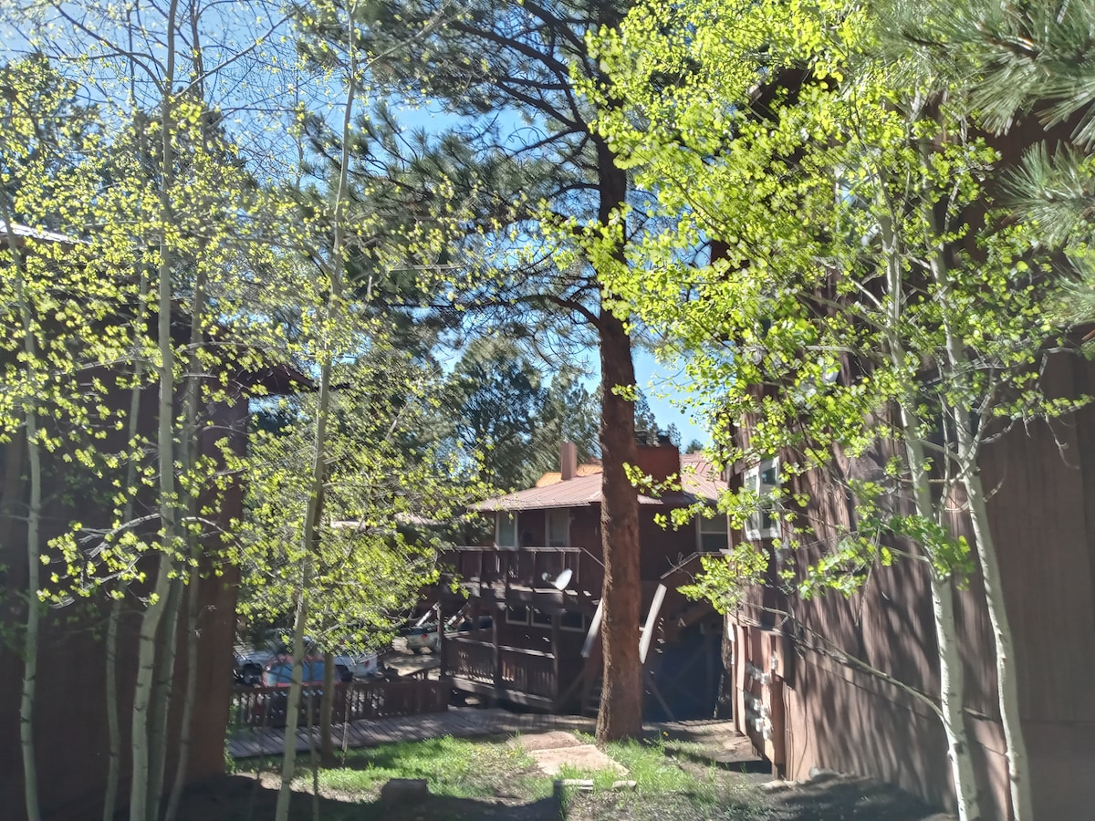 Được sửa sang lại vào năm ngoái! Chắc chắn sẽ là căn hộ cao cấp tuyệt vời nhất ở Angel Fire! 😎 Điểm hẹn thú vị này nằm trong khu rừng của khu phức hợp Pinetree Commons. Chỉ cách AF Resort 2 dãy nhà. Gần khu trượt tuyết, đạp xe đạp, đi bộ đường dài, chơi golf và nhiều hoạt động khác! Lấy đồ uống và tận hưởng một trong 2 ban công ngoài trời hoặc ấm cúng bên lò sưởi. Nội thất thú vị và hấp dẫn... với những bức tranh tường và trang trí chiết trung mang đến trải nghiệm khác với bất cứ điều gì trong khu vực! Hoàn hảo cho gia đình/nhóm bạn bè! 😊