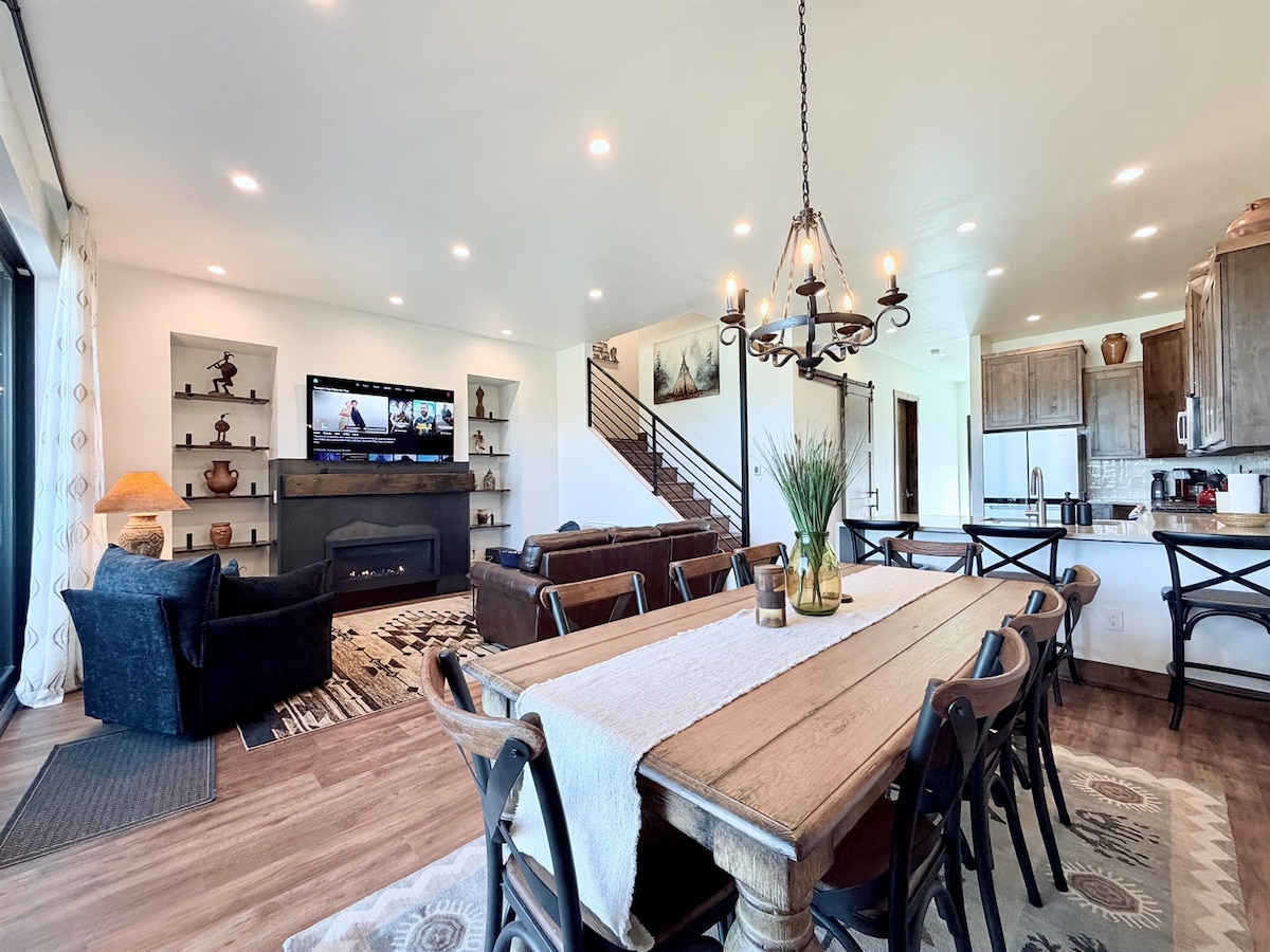 Chào mừng bạn đến với khung cảnh núi non hoàn hảo – mà không cần lái xe dài, quanh co lên con đường bụi bặm! Ngôi nhà phố hoàn toàn mới này có tầm nhìn ra núi tuyệt đẹp, bồn tắm nước nóng riêng và nhiều không gian cho 12 người bạn và gia đình thân thiết nhất của bạn. Trẻ em sẽ thích giường tầng tùy chỉnh và mọi người đều có thể thư giãn với TV thông minh trong nhà. Nằm cách đó chỉ vài phút trượt tuyết, chơi golf, đạp xe leo núi, đi bộ đường dài và câu cá tại Angel Fire Resort, bạn sẽ có bốn mùa phiêu lưu ngoài trời ở cửa nhà.