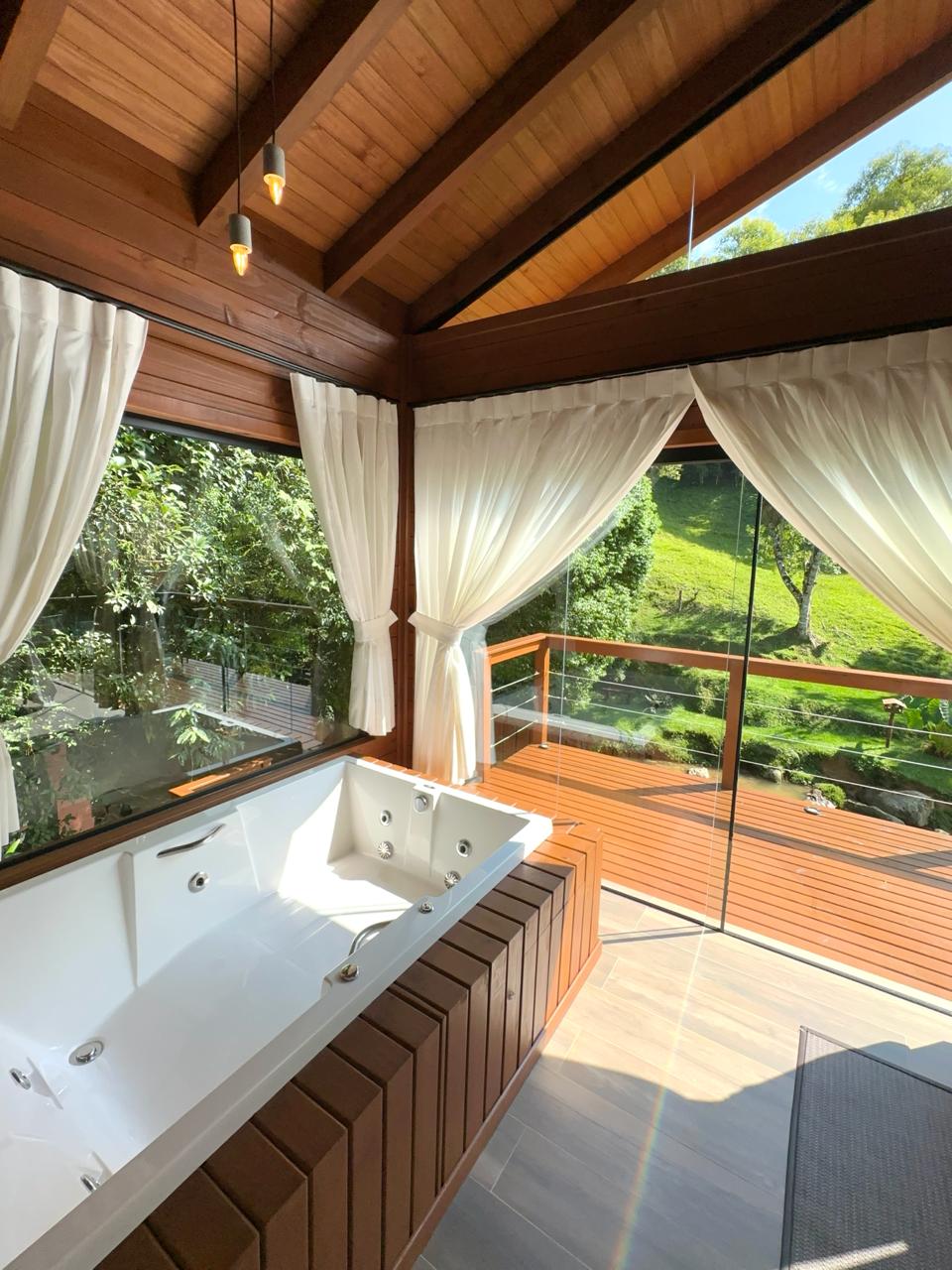 Refúgio delicioso em meio à floresta! Nossa cabana encantadora oferece vista deslumbrante das árvores trazendo uma verdadeira imersão na natureza com privacidade e o aconchego para relaxar e se reconectar. Com banheira de hidromassagem para casal e lareira aconchegante. Experiência Única: Desconecte-se do estresse e mergulhe na serenidade da natureza. Com tudo perfeito para um casal: com cozinha equipada, banheiro quentinho com vista e teto de vidro para quem busca paz e tranquilidade