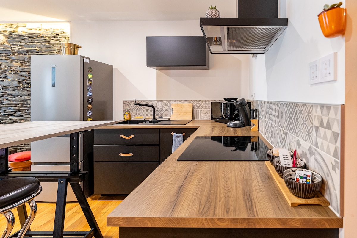 ✨ Tận hưởng một căn hộ sáng sủa kết hợp phong cách công nghiệp và sự thoải mái ✨ Phòng 🛏 ấm cúng với giường thoải mái và phòng tắm khép kín hiện đại, hoàn hảo cho sự riêng tư của bạn. 🛋 Phòng khách rộng rãi, mang đến một khung cảnh ấm áp. Bếp mở được trang bị 🍽 đầy đủ tiện nghi, lý tưởng cho bữa ăn của bạn. Cửa sổ 🌞 lớn tắm cho mọi phòng với ánh sáng tự nhiên. Sàn 🎨 gỗ cứng cổ, tường đá phiến Trélazé và các bức tranh nguyên bản, cho một nhân vật độc đáo. Vị trí 📍 tuyệt vời, hoàn hảo cho thời gian lưu trú thư giãn hoặc hiệu quả.