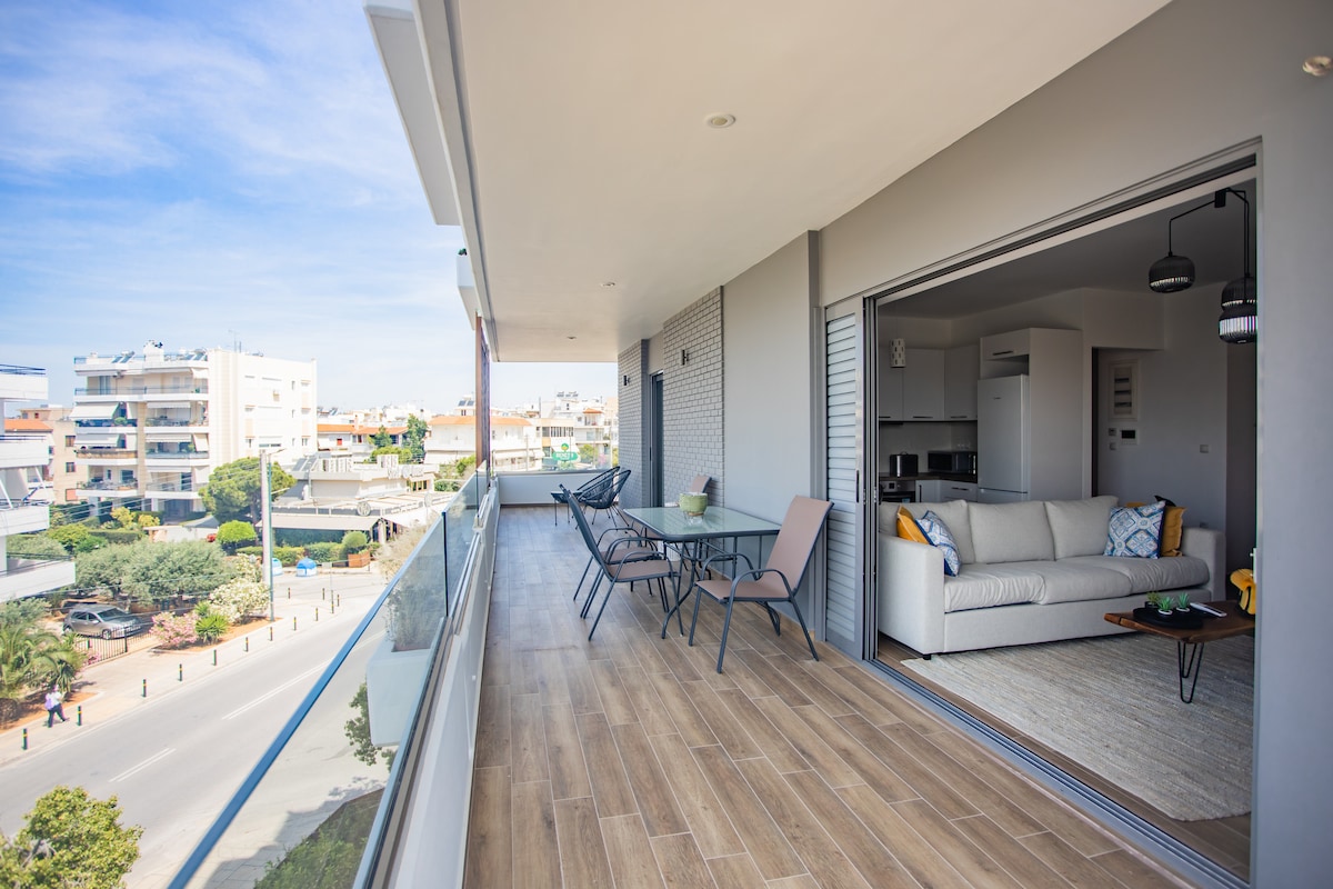 Căn hộ penthouse với tầm nhìn toàn cảnh bờ biển Athens Tỉnh dậy với ánh sáng tự nhiên dồi dào và tầm nhìn toàn cảnh ra núi hoặc biển từ sân hiên rộng lớn của bạn – nơi lý tưởng để uống cà phê buổi sáng hoặc ngắm hoàng hôn ấm cúng. Căn hộ penthouse mới được cải tạo này ở Glyfada giúp bạn dễ dàng đến cả bãi biển và trung tâm thành phố Athens, mang đến cho bạn những điều tuyệt vời nhất của cả hai thế giới: thư giãn bên bờ biển và khám phá thành thị.