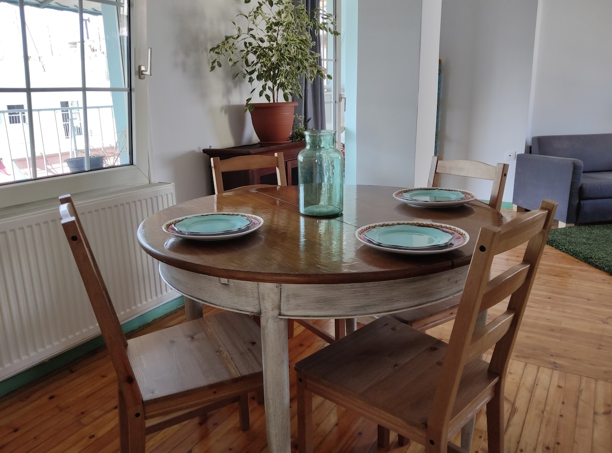 ●Căn hộ rộng rãi và hiện đại này lý tưởng để chứa tối đa 6 khách. Được cải tạo● hoàn toàn về tính thẩm mỹ độc đáo, bao gồm nhà bếp đầy đủ tiện nghi, 2 phòng ngủ, phòng tắm và ban công đẹp. ●Chỗ ở nằm hoàn hảo giữa các di tích văn hóa và lịch sử lớn; cách quảng trường Aristotelous 5 phút, cách quảng trường St. Sofia 3 phút. ●Bạn sẽ ở trong một khu phố an toàn, với rất nhiều cửa hàng, siêu thị, nhà hàng và quán cà phê xung quanh, cũng như một khu chợ 24 giờ.