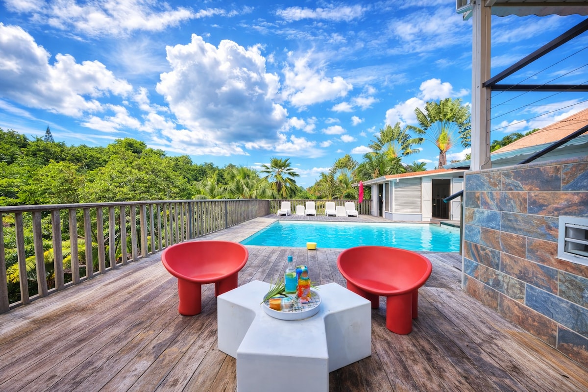 Biệt thự màu Caribbean với hồ bơi tại 3 Ilets