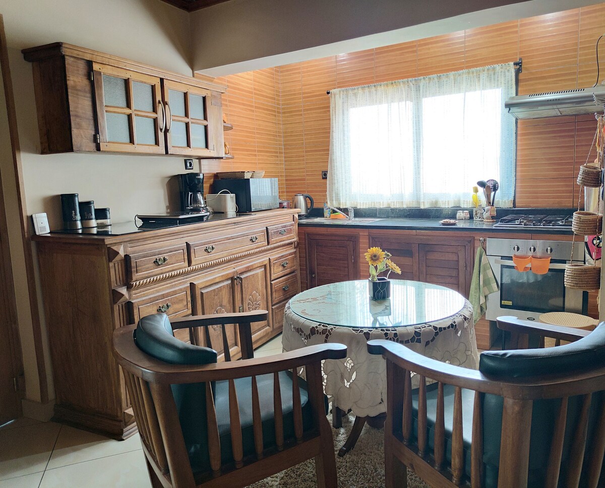 Một căn hộ rộng 100m² nằm trong một khu vực sang trọng ở Upper Town (Faravohitra). Căn hộ: - Một cổng ngay bên đường, cách căn hộ vài bước chân. - Căn hộ được cách âm tốt; một căn phòng lớn ấm cúng: nhà bếp được trang bị đầy đủ tiện nghi, phòng ăn và phòng khách. Sàn gỗ được đánh bóng - Cả hai phòng ngủ đều được trang bị các phòng tắm riêng ( bồn tắm và buồng tắm đứng).
