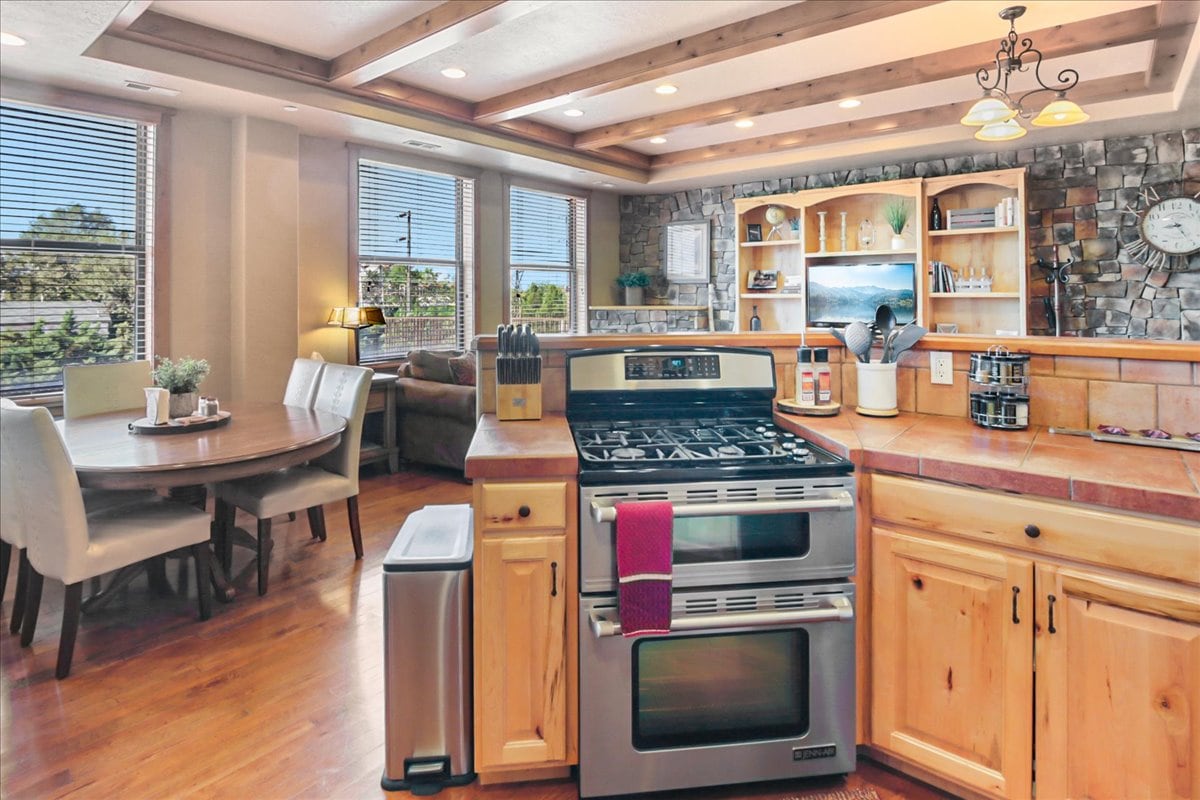 Tận hưởng mùi cây thông, không khí trong lành và âm thanh của dòng sông provo chỉ cách ban công lớn phía trước vài feet. Cabin 2 phòng ngủ, 1 phòng tắm thân mật của chúng tôi có kích thước hoàn hảo cho kỳ nghỉ của cặp đôi hoặc kỳ nghỉ gia đình đến khu nghỉ dưỡng từng đoạt giải thưởng Conde Nast. Phòng ngủ 1 có giường cỡ King và phòng ngủ 2 giường cỡ queen. Khu vực sinh hoạt thoải mái và rộng rãi. Bếp có các thiết bị chất lượng và mặt bàn lát đá granite. Đồ nấu ăn, bát đĩa và dụng cụ nấu ăn được cung cấp.