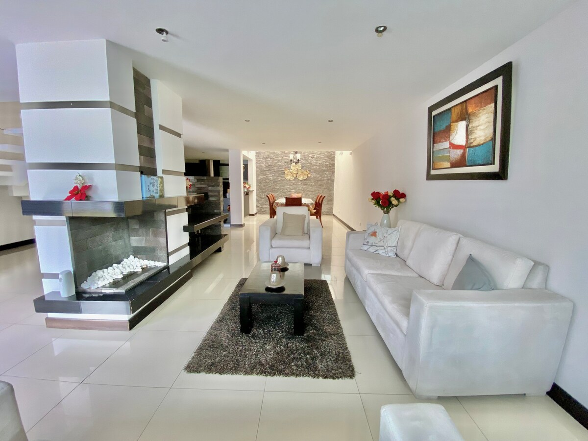 Bạn sẽ không tìm thấy một ngôi nhà như nhà của chúng tôi ở Ibarra! Đây là một ngôi nhà đẹp với thiết kế tối giản hiện đại trong một khu dân cư yên tĩnh, cách trung tâm mua sắm chính, các tổ chức tài chính và các nhà hàng hai dãy nhà. Nó có ba phòng ngủ lớn, mỗi phòng có phòng tắm riêng và giường cỡ king hoặc queen, phòng TV, nhà bếp hiện đại được trang bị đầy đủ tiện nghi, vườn, sân thượng, bãi đỗ xe an toàn và WiFi.