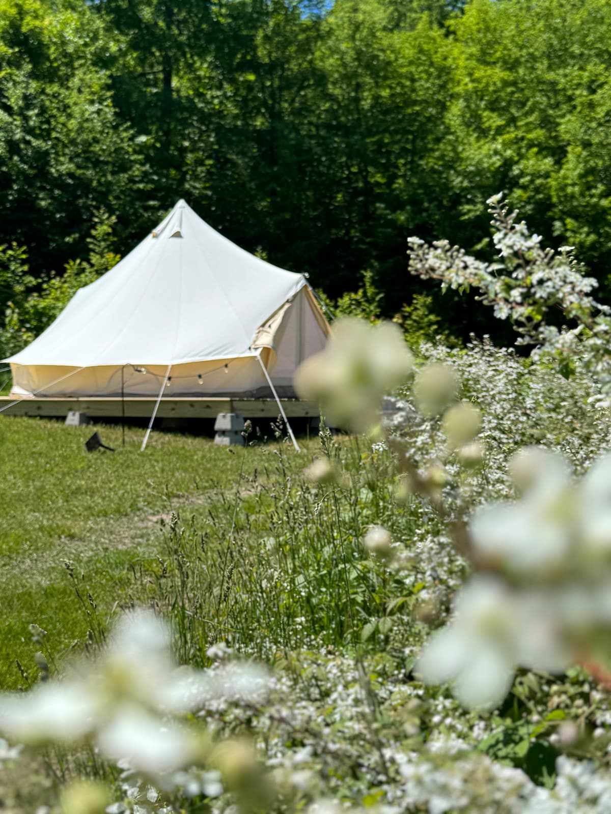 Thư giãn và thư giãn trên những ngọn đồi thoai thoải tại Lost Woods Farm & Forest, một khu đất rộng 160 mẫu Anh ở Boyne Falls. Lều chuông mới nhất của chúng tôi có 4 giường đơn và 1 giường queen cho tối đa 6 khách. Ga trải giường sang trọng, khăn tắm, đèn lồng, trạm sạc, quạt, nệm mút nhớ mới, nhà tắm sinh thái và lò sưởi riêng đều là một phần trong trải nghiệm Glamping của bạn. Cà phê tươi và bánh mì tròn tự làm có sẵn vào buổi sáng. Trẻ em phải từ 12 tuổi trở lên.