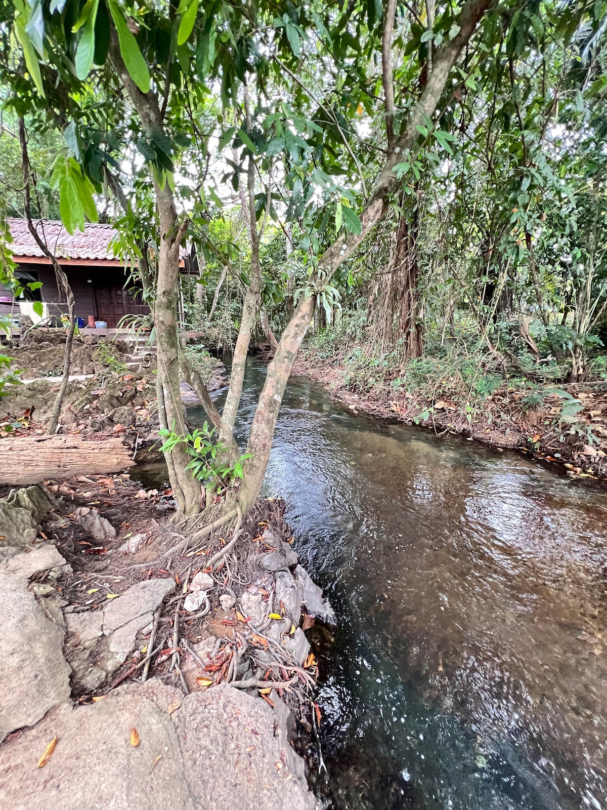 Bungalow là riêng tư (chỉ có một bungalow) với phòng tắm trong phòng – nó được xây dựng trên một ao cá và liền kề với một con lạch và chim non xinh đẹp. Tọa lạc tại một địa điểm/ nơi nghỉ dưỡng bán nông thôn Thái Lan với các hoạt động và điểm tham quan ngoài trời như – • Chèo thuyền kayak * • Đạp xe * • Câu cá * • Bơi lội • Đi bộ • Vườn rau lớn • Động vật nuôi trong phạm vi miễn phí • Lạch với bơi lội tuyệt vời • Quang cảnh núi • Các hoạt động nông thôn của Thái Lan, ví dụ như khai thác cao su Giới thiệu Ecovilla 2 adjacent hse appox cách đó 100 m