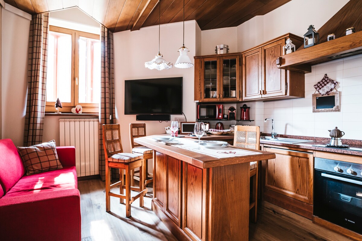 Chỗ ở dễ chịu trong một nhà gỗ chalet stilish, gần tầm nhìn đẹp, dốc trượt tuyết và thang máy trượt tuyết, nhà hàng và quán bar, các hoạt động cho gia đình và đường mòn để đi bộ đường dài hoặc đi xe đạp leo núi. Trang trí bằng gỗ điển hình và đá lộ ra ngoài, ấm cúng và thoải mái. Căn hộ hai tầng bao gồm hai phòng ngủ, phòng khách có lò sưởi, nhà bếp có máy rửa chén và lò vi sóng, 2 phòng tắm, hộp trượt tuyết và gara. Wi-fi, ga trải giường và khăn tắm được cung cấp theo yêu cầu.