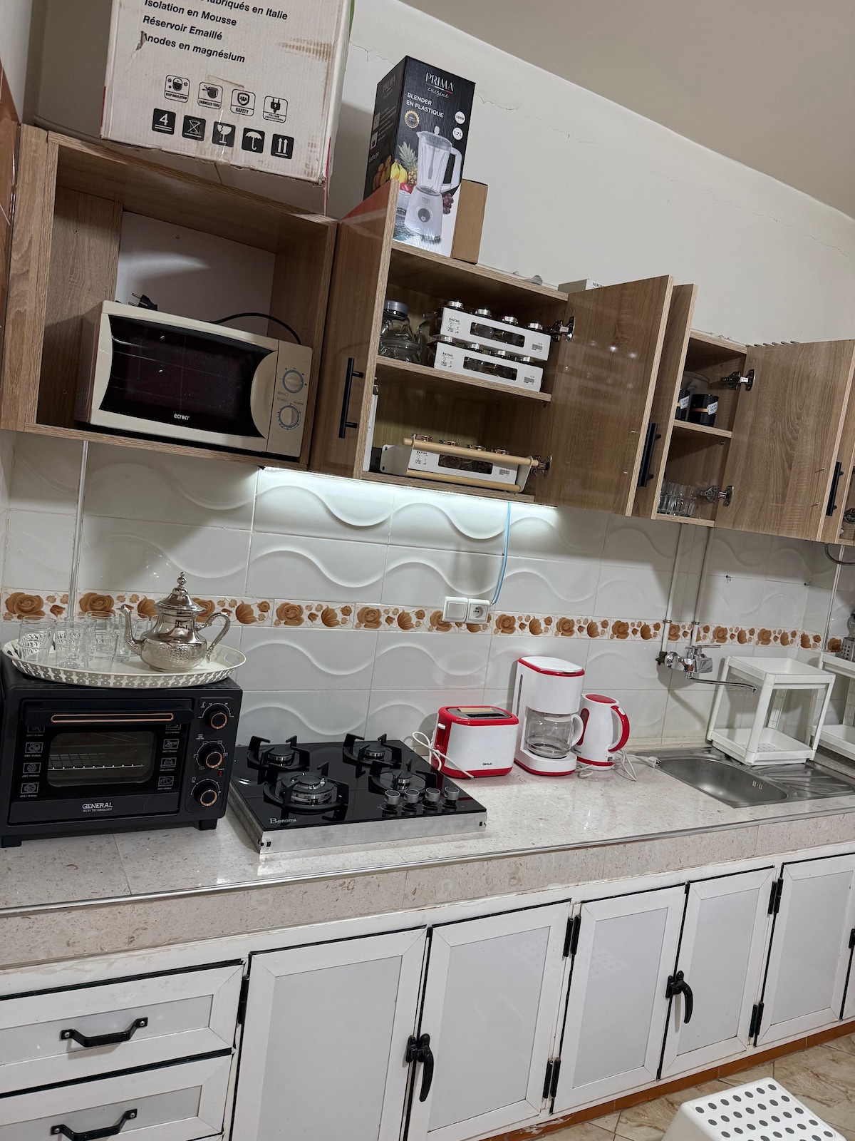 Bienvenue dans ce beau appartement de 130 m² au cœur d’Errachidia ! Spacieux et lumineux, il offre 2 chambres doubles, 1 chambre simple avec bureau, 2 salles de bain, une salle à manger et un salon au style chill et cosy. À quelques pas de la gare routière, du souk et des commerces. Profitez du transport gratuit depuis l’aéroport 🚗✈️ Confort et emplacement idéaux pour familles, amis ou voyageurs d’affaires.