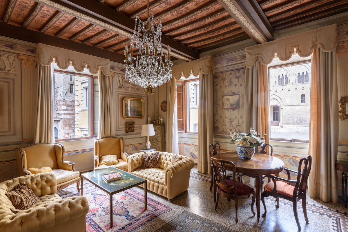 Căn hộ 200 m2 được trang bị nội thất cổ điển quý giá và phòng rất rộng rãi: 13 cửa sổ nhìn ra phố cổ, mỗi cửa sổ đều có tầm nhìn độc đáo ra thành phố. Sảnh lớn và rộng rãi với tầm nhìn tuyệt đẹp ở đầu Banchi di Sopra, Piazza Salimbeni và trụ sở chính của Monte dei Paschi, được hình thành bởi các cung điện quý tộc Tantucci, Salimbeni và Spannocchi. Sảnh thứ hai với thư viện, giường sofa và tầm nhìn độc quyền tương tự. 2 phòng ngủ lớn với tầm nhìn ra thành phố và giường cỡ king. 3 phòng tắm, một phòng có bể sục và một phòng có vòi sen. Một hành lang dài đi qua căn hộ, lối vào rộng rãi và sân thượng riêng trên sân trong. Sảnh chờ thứ ba với sofa giường và tầm nhìn ra thành phố. Phòng ăn với tầm nhìn toàn cảnh Duomo of Siena và Vương cung thánh đường San Domenico nổi bật trên những mái nhà thời trung cổ của Siena cách chúng tôi vài mét. Bếp đầy đủ tiện nghi với khu vực giặt ủi. Nó chiếm toàn bộ tầng hai, cung điện 1600 của chúng tôi và có tầm nhìn độc đáo và đặc quyền ra Siena và các kỳ quan kiến trúc của nó. Chúng tôi đang ở Banchi sopra Sopra, trung tâm lịch sử chính của Siena, bên dưới ngôi nhà bạn sẽ tìm thấy các cửa hàng tốt nhất ở trung tâm với tất cả các thương hiệu thời trang cao cấp, rất nhiều nhà hàng; Nhà máy rượu vang, Quán bar và Siêu thị với các sản phẩm đặc trưng của Tuscany.
