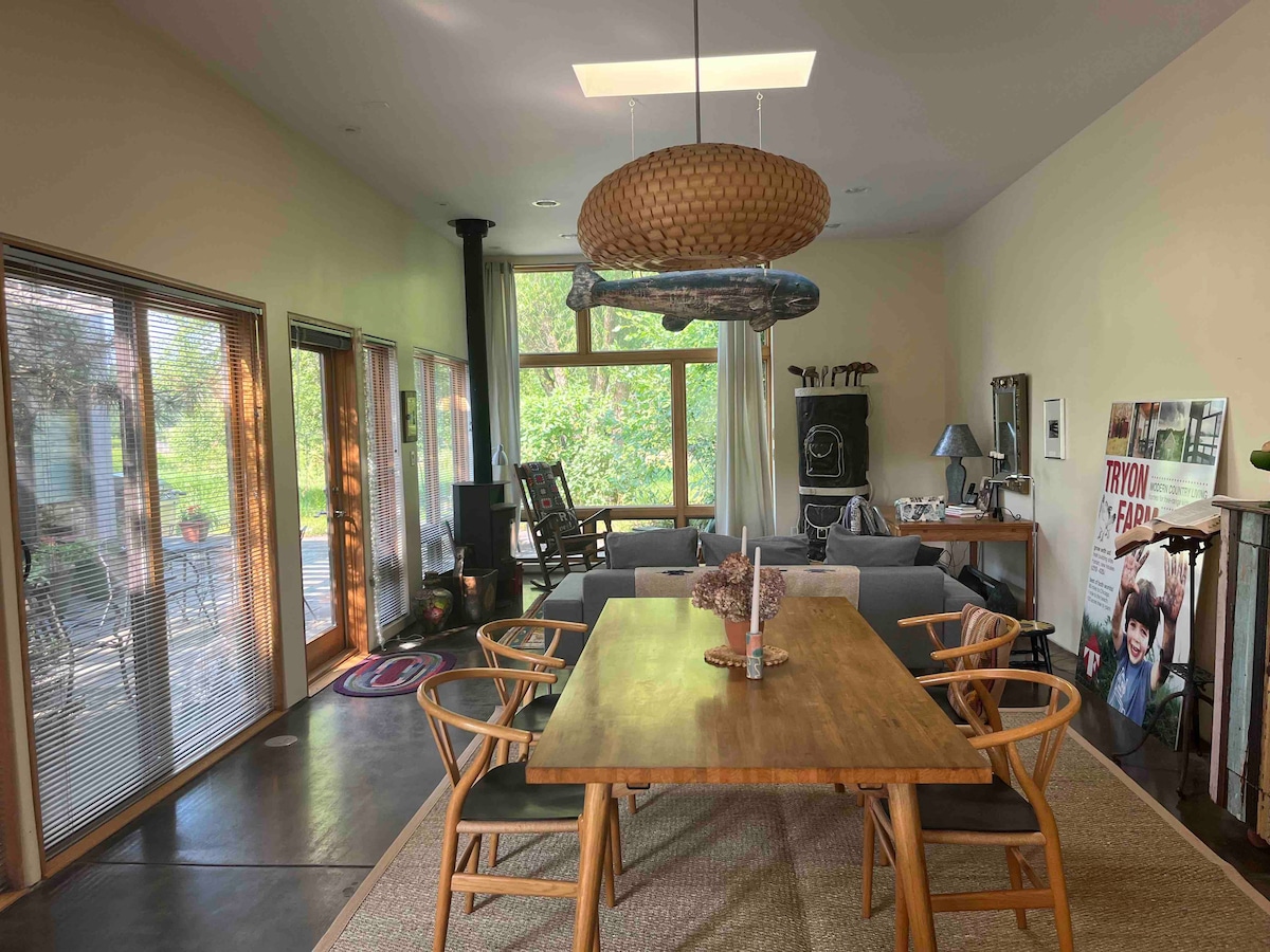 Thư giãn trong một cabin gỗ cứng quyến rũ trên một chỗ ở không sử dụng điện lưới hoàn toàn bằng năng lượng mặt trời. Tận hưởng việc sử dụng độc quyền 50 mẫu đất rừng đa dạng với hơn 4 km đường mòn tự nhiên được đánh dấu và bảo trì (giày đi tuyết cho thuê được cung cấp!) và các tính năng đặc biệt như SoundForest, mê cung đi bộ thiền định, cộng với phòng xông hơi làm bằng gỗ tuyết tùng địa phương... nó giống như có công viên riêng của bạn! Thậm chí còn có một lựa chọn ($) để mang theo một giỏ đồ ăn sáng.