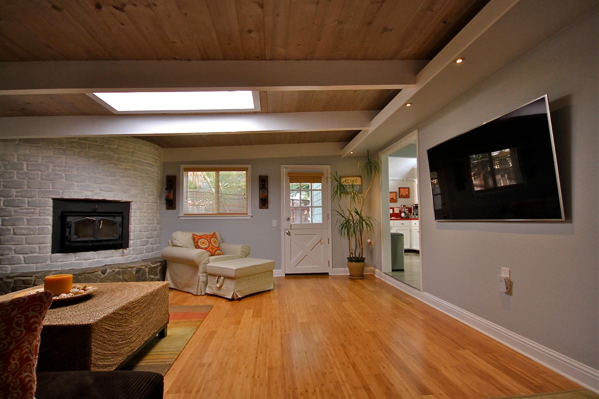 Thư giãn bên vịnh tại căn nhà gỗ bungalow sang trọng này gần bãi biển Rio Del Mar. Tận hưởng trần nhà thờ, bồn tắm nước nóng ngoài trời riêng, sàn phòng tắm được sưởi ấm và bếp đầy đủ tiện nghi. Hoàn hảo cho các cặp đôi, gia đình nhỏ hoặc những kỳ nghỉ xa với Wi-Fi và Roku TV. Đi bộ ra bãi biển hoặc khám phá Seacliff State Beach, Capitola Village và Santa Cruz Boardwalk gần đó. Thư giãn, nạp năng lượng và đắm mình trong vẻ quyến rũ của bờ biển Vịnh Monterey. Giấy phép số 211099