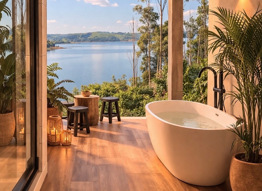 Nhà gỗ chalet có mát-xa thủy lực, tầm nhìn ra đập, 2p.