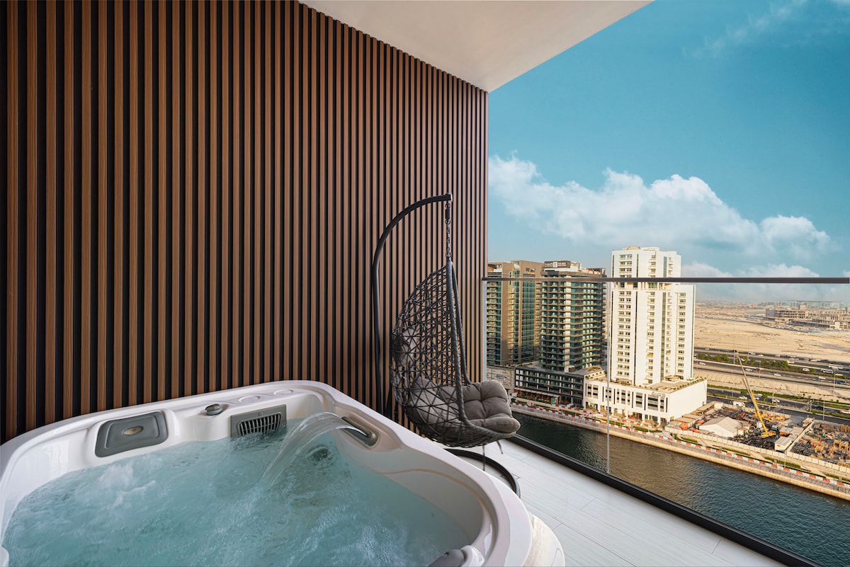 Chào mừng bạn đến với một studio hiện đại nhìn ra kênh ở Business Bay, có bể sục ban công riêng và bầu không khí tươi sáng, thư giãn. Nằm ở vị trí hoàn hảo chỉ cách Trung tâm thương mại Dubai và Trung tâm thành phố vài phút, không gian phong cách này mang đến sự thoải mái, riêng tư và tiện lợi. Lý do bạn sẽ thích trải nghiệm này: • Tầm nhìn ra kênh đào và đường chân trời • Bồn tắm sục ngoài trời riêng • Bếp đầy đủ tiện nghi + TV thông minh + Wi-Fi nhanh • Giường Queen với ga trải giường mềm • Hồ bơi, phòng tập thể dục, phòng xông hơi khô và bãi đỗ xe an toàn miễn phí