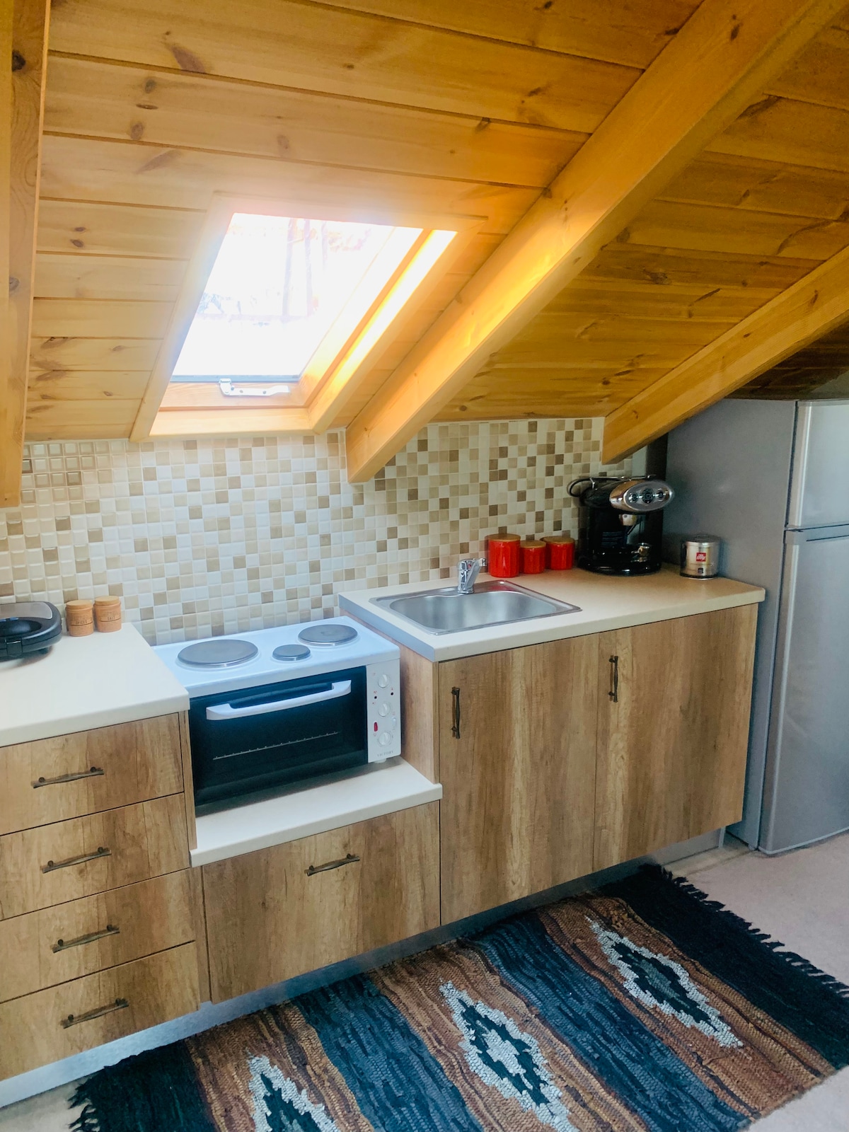 Traditional wood and stone apartment with a beautiful view to the village and the mountains of the area. The apartment is within walking distance (300m) from the main road. It can accommodate up to 6 people, offering a double bed in the bedroom, two sofas which can be converted into beds in the living room, and a bunk bed in the hall. The kitchen is fully equipped with coffee filter machine and toaster. Moreover, there is a separated bathroom and a restroom. Parking is available.