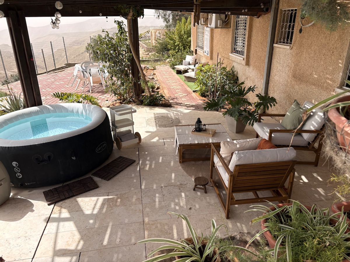 ליהנות עם כל המשפחה במקום המסוגנן הזה. יחידת אירוח משפחתית. סוויטת אחווה מתאים לזוג+2 ילדים או 3 מבוגרים. מיטה זוגית יהודית בחדר אחד. בנוסף ספה נפתחת בכניסה ליחידה (כחצי חדר). שתי טלוויזיות גדולות וחכמות עם נטפליקס ו yes. מטבחון מאובזר כולל כלים, מכונת קפה, קומקום, מיקרוגל, כירה חשמלית, מיחם, מקרר, ערכת קפה. מקלחת ושירותים מעוצבים ומרווחים. חצר פרטית עם פינות ישיבה. ג'קוזי מפנק עם airjet. בקבוקוני שמפו וסבונים, מגבות, מצעים חדשים ונקיים ביחידת האירוח. יש ויטרינות גדולות בשני החדרים לחצר.