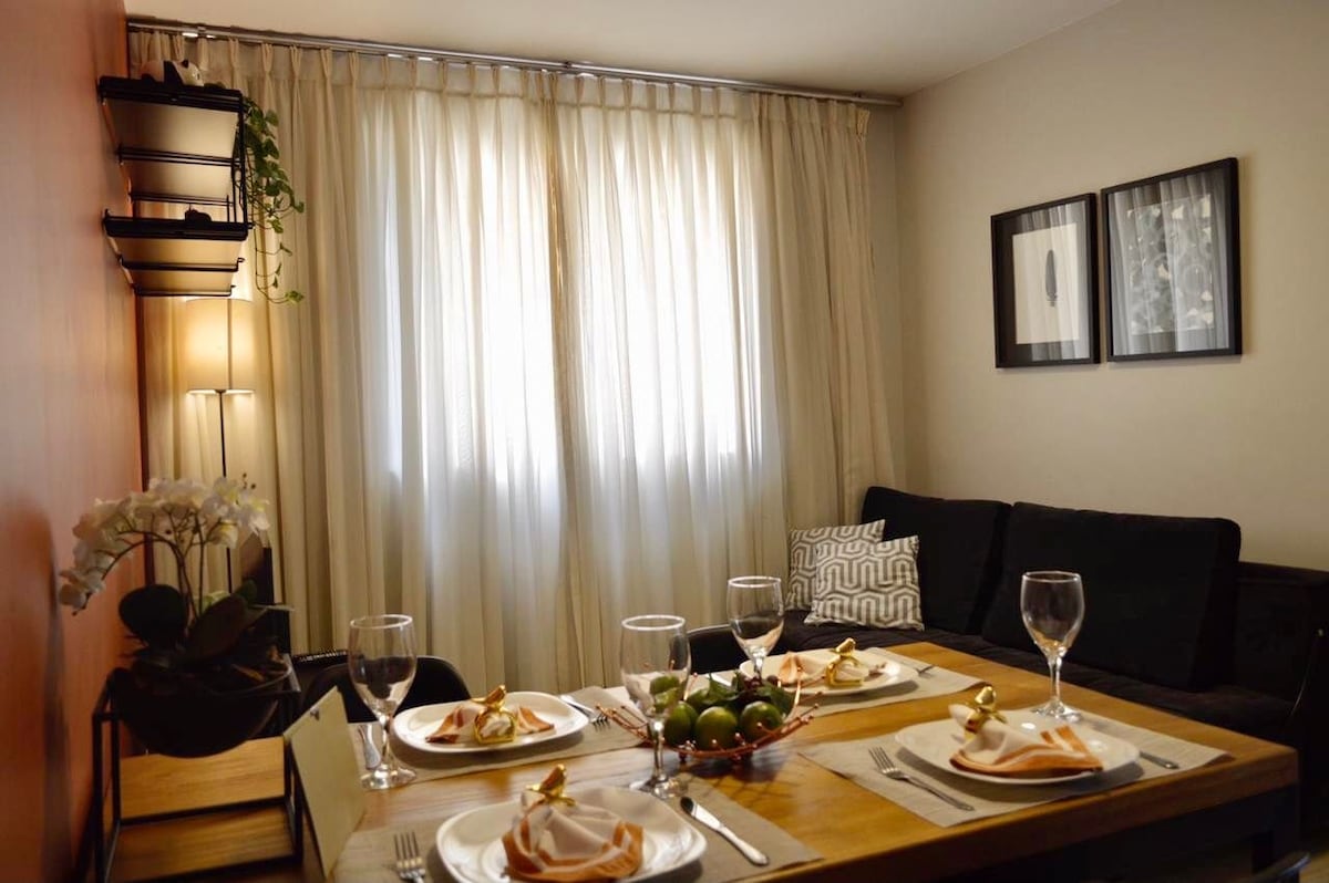 "Căn hộ tinh tế trong Trung tâm" được thiết kế cho những người tìm kiếm sự tinh tế và riêng tư. Được lên kế hoạch trong các chi tiết nhỏ nhất của nó, nó có khăn tắm và ga trải giường bằng dây Ai Cập, máng lụa và thảm thoải mái dưới chân bạn. Căn hộ cũng có hệ thống chiếu sáng trắng và hệ thống màu vàng, để bạn tạo ra các môi trường khác nhau. Nó có Wi-Fi nhanh, truyền hình cáp, điều hòa nhiệt độ, điệu nhảy Pole và mặt bàn nhìn ra trung tâm thành phố, nơi bạn có thể uống, ngắm cảnh và nói chuyện.