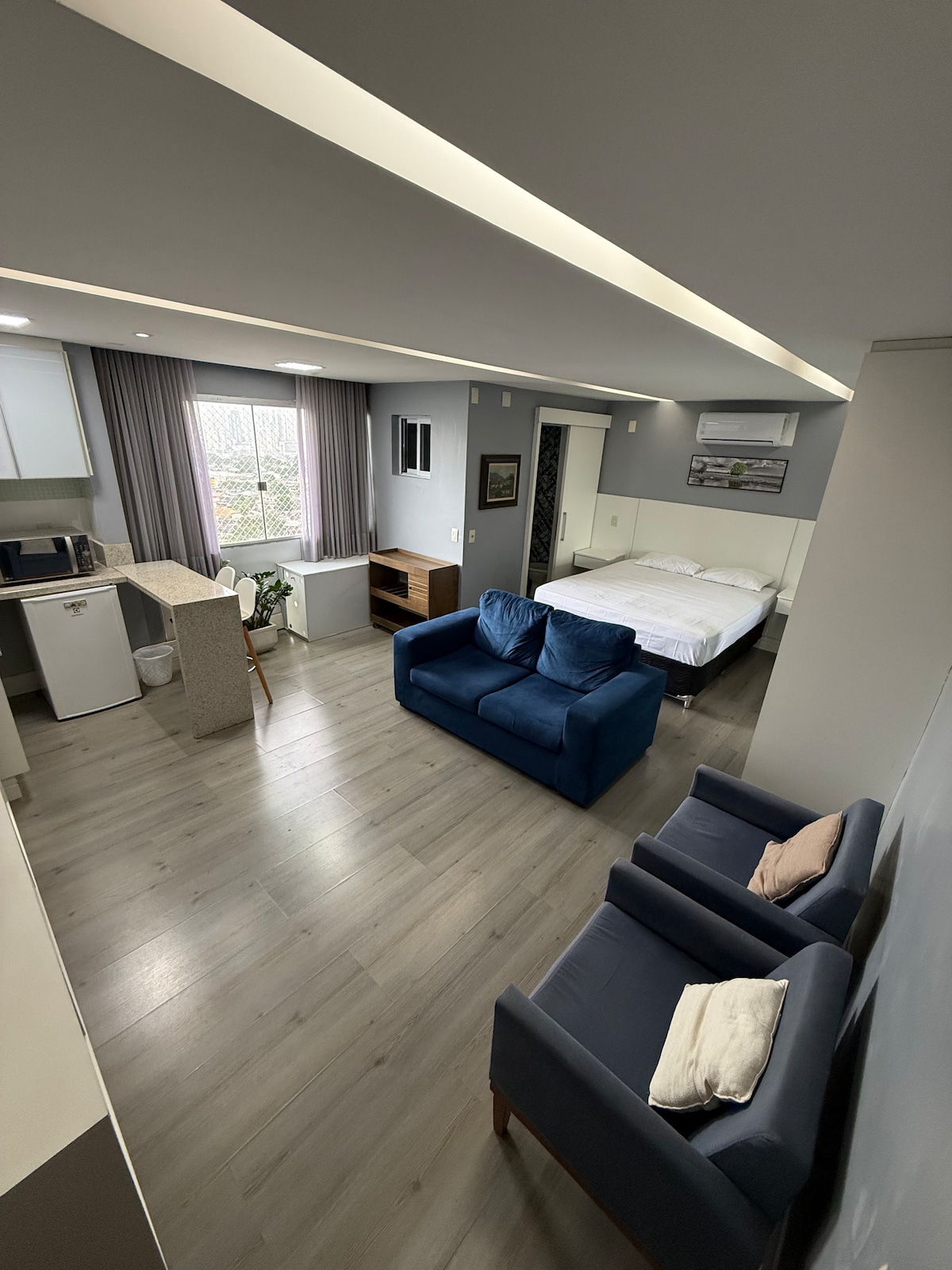 💯 Trải nghiệm Marista Premium! Căn hộ hoàn chỉnh với phòng ngủ và phòng khách riêng biệt, hai TV thông minh, wifi nhanh và tất cả sự thoải mái bạn cần để tận hưởng Goiânia theo phong cách. Hoàn hảo cho các chuyến công tác hoặc giải trí. Bật điều hòa không khí và TV bằng lệnh thoại và nghe nhạc của bạn thông qua Alexa và tận hưởng trung tâm ẩm thực của Khu vực Marista và Setor Bueno đương đại ở khu vực tốt nhất của Goiânia! Chung cư Blend Smart Style Khu dân cư Creation ®️Renovato