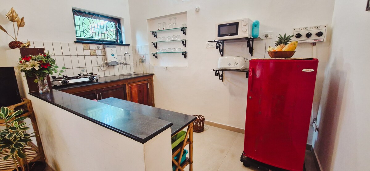 Chào mừng bạn đến với 🏡🌴Ancessaao's - lối thoát goan đích thực của bạn ở Assagao, chỉ cách Vagator & Anjuna 10 phút Được thiết kế để sống chậm và nghỉ ngơi thân mật, cabin này pha trộn với sự quyến rũ với những tiện nghi hiện đại, hoàn hảo cho các cặp đôi hoặc những người đi du lịch một mình tìm kiếm sự thư giãn và riêng tư. Điểm nhấn quan trọng Điều hòa nhiệt độ và Wifi ❄️| TV & tủ lạnh mini 🍺| Verandah riêng và nội thất có ánh nắng mặt trời 🛏️| Kitchenite (không phải nhà bếp)| Trà, cà phê và túi sữa ☕| nguồn dự phòng | Có sẵn đồ giặt ủi ⚡| Chỗ ở có cổng 🚪| Bãi đỗ xe bên trong 🅿️