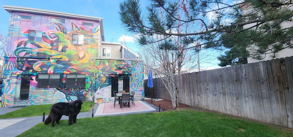 Downtown Santa Fe Arts District, Large, Modern & Artsy Vibe! Patios, Lush Yard with heaters, bar, outside fridge. Walk to breweries, restaurants, coffee, and more. Convention Center, Min. to Red Rocks, Meow Wolf, Opera House, Broncos (Empower / Mile High), Coors Field, Ball Arena, Elitch Gardens, Museums, Civic Center, 2 blks from Denver Health Unique art filled, numerous murals, game room, foosball, projector, TV lounge! Gated parking via alley. Easy Mtn Trips via 6th Ave. PETS - Get Ok