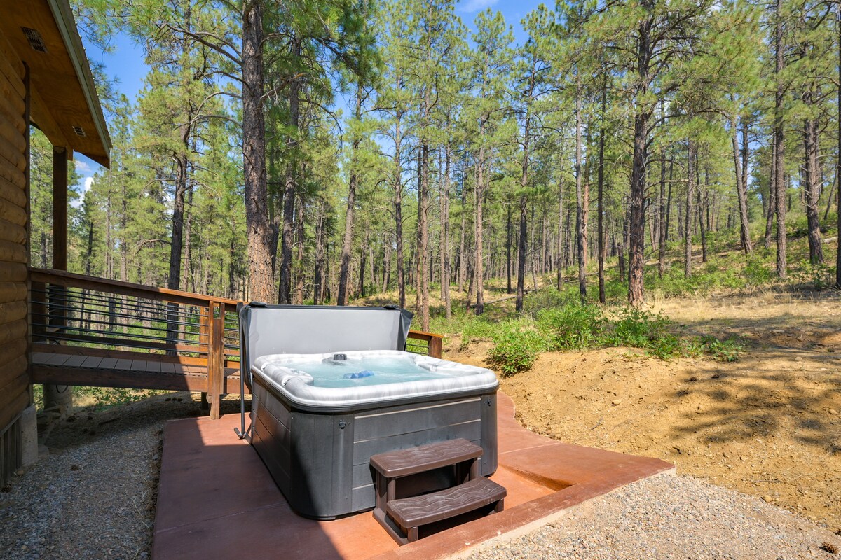 Cabin D-log Scandinavia nhỏ nguyên sơ này nằm trên hơn 2 mẫu rừng yên tĩnh cách trung tâm Pagosa 5 phút lái xe (khu vực thương mại hơn của chúng tôi với cửa hàng tạp hóa, ăn uống, nhà máy bia, Walmart, v.v.) và khoảng 10 phút đến suối (trung tâm thành phố). Trải nghiệm của bạn được tăng cường với bếp nướng gas, chỗ ngồi/bàn ăn ngoài trời, nhà bếp được trang bị đầy đủ và thậm chí là một khoảng trống để đốt lửa trại và ngắm sao. Hươu và gà tây hoang dã là những vị khách thường xuyên. Nơi tuyệt vời để rút phích cắm và thư giãn. VRP-25-0258