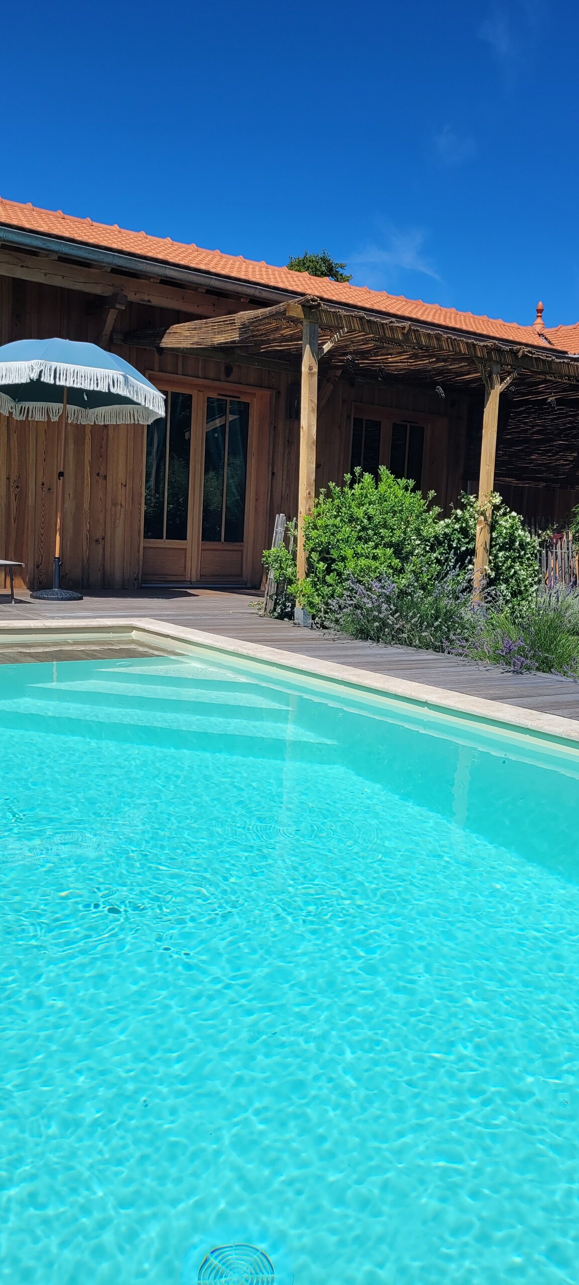 Ngôi nhà lớn với thiết kế hiện đại, được chia SẺ theo HAI PHẦN, Một căn hộ dành cho Daniel & Simone và một phần liền kề 90 m2 được cho thuê trên Airbnb Chúng tôi là hai người, Daniel & Simone, những người về hưu năng động và kín đáo. Hai phần được ngăn cách tốt bởi một phòng kỹ thuật/phòng giặt ủi. Phần thuê hoàn toàn độc lập, lối vào/bãi đỗ xe riêng và không nhìn thấy được tầm nhìn của chúng tôi và một phần sân thượng dành riêng với tầm nhìn ra gió. Chúng tôi chỉ dùng chung hồ bơi và khu vườn có hàng rào.