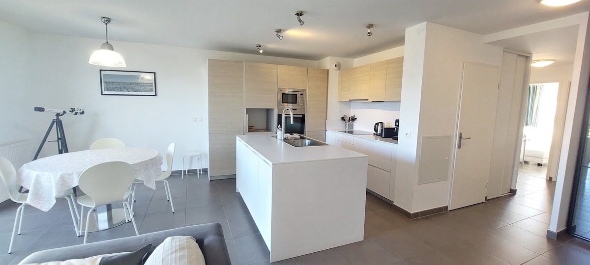 Căn hộ tuyến đầu tiên Bassin d'Arcachon, giữa biển và rừng. Les Jacquets, bán đảo Cap-Ferret. Trên tầng 1 của một ngôi nhà gỗ năm 2013, trên một con đường riêng. Ra bãi biển trực tiếp. Được trang bị điều hòa không khí thoải mái 60 m². 1 phòng ngủ với giường cỡ queen và nệm cao su tự nhiên, phòng tắm vòi sen, nhà vệ sinh, phòng giặt ủi có máy giặt, thiết bị cho em bé, máy sấy, phòng khách - bếp lớn với 1 giường cỡ queen - tủ quần áo. Bếp được trang bị lò nướng điện, bếp từ, lò vi sóng, tủ lạnh máy rửa chén. Wifi TNT.