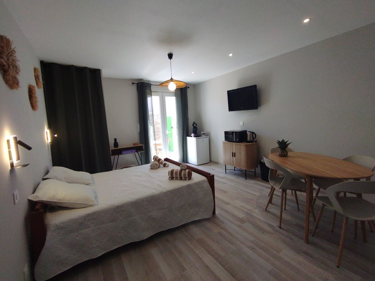 Ở Roubia, studio nhỏ mới quyến rũ nằm trong một ngôi làng điển hình của Minervois, gần Canal du Midi, trong một phân khu gần vườn nho và cây ô liu. Studio độc lập rộng khoảng hai mươi m2 với tính năng tự nhận phòng nằm trong nhà của chủ sở hữu với một sân thượng nhỏ đang được xây dựng. Có khả năng đi dạo vui vẻ, ghé thăm các nhà máy rượu vang và các ngôi làng nhỏ.