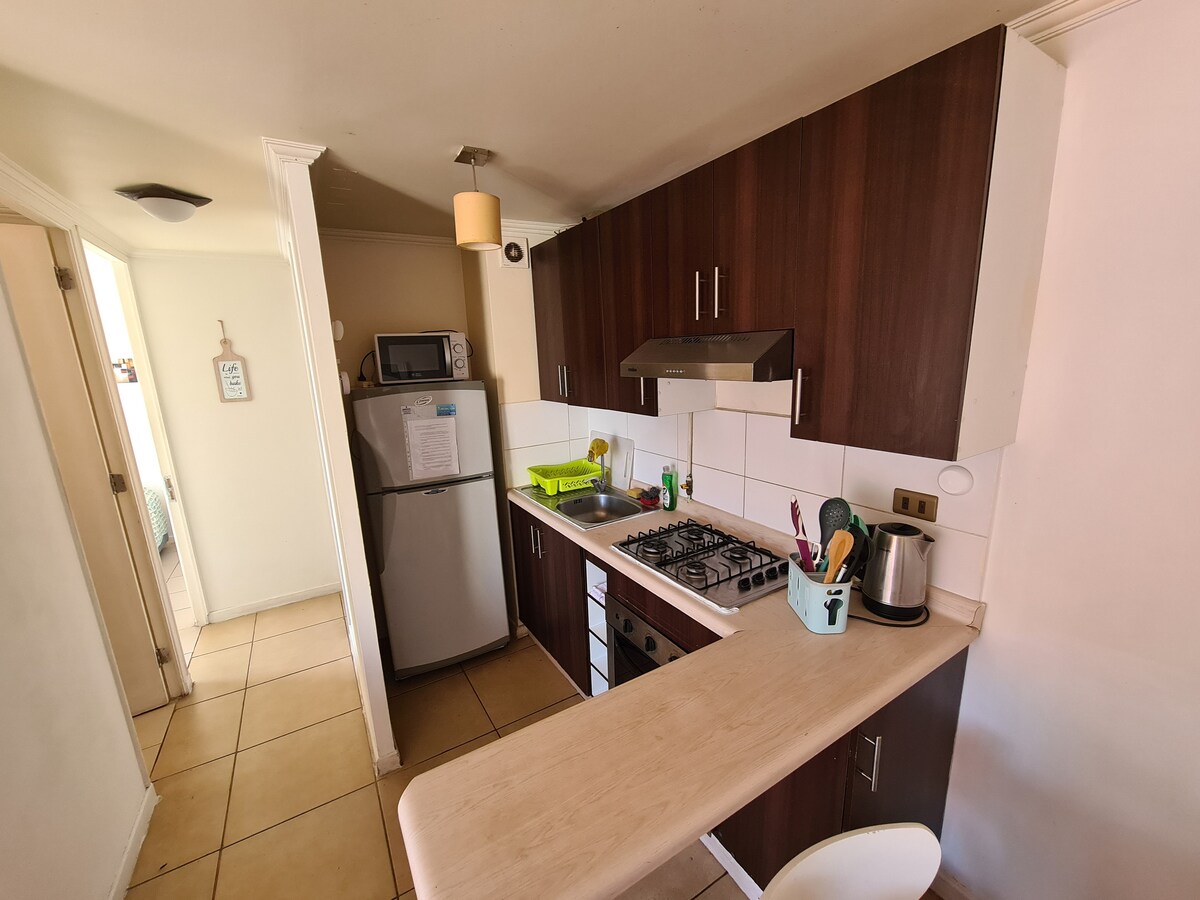 Departamento cercano a la playa, ubicado en el condominio portal del sol, 3er piso. El condominio cuenta con estacionamiento, piscina, cámaras y guardias de seguridad las 24 hrs. del día, el depto cuenta con 2 smart tv, 1 parrilla a gas . Se encuentra a 20 min. aprox en vehículo al centro de la ciudad.