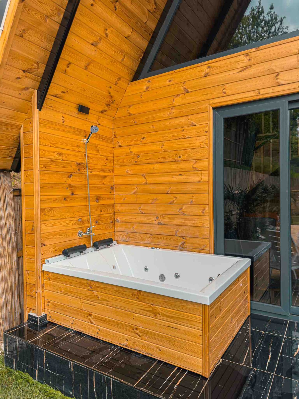 Với bồn tắm nước nóng, lò sưởi, lò sưởi, bếp nướng và vườn có mái che, nó để lại cho bạn và gia đình của bạn với thiên nhiên. Nó được thiết kế thoải mái với 1 phòng ngủ, 1 phòng tắm - nhà vệ sinh và khu vực sinh hoạt và phù hợp với 2 người. Tất cả đồ dùng nhà bếp cơ bản và điều hòa không khí đều có sẵn. Chỗ ở bao gồm vệ sinh lối vào, Internet Wi-Fi, sử dụng nước điện. Toàn bộ cơ sở của chúng tôi được vệ sinh và khử trùng thường xuyên để tránh côn trùng và sâu bệnh. Có sẵn máy phát điện và bình nước