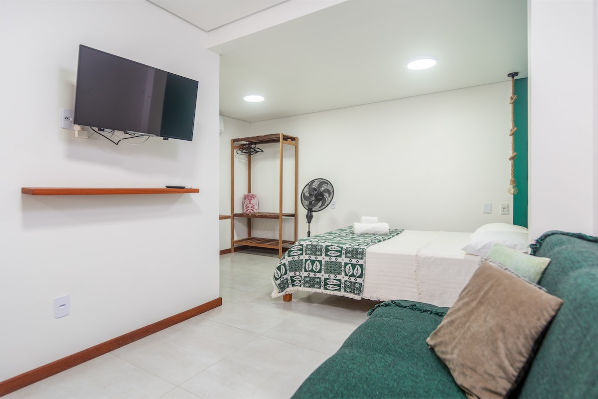 Hãy đến ở trong Suite của chúng tôi với nhà bếp đầy đủ IV và tận hưởng thành phố tuyệt vời của chúng tôi. Nghĩ đến việc mang đến cho bạn sự thoải mái và tiện lợi, chúng tôi có một phòng ngủ đầy đủ với nhà bếp đầy đủ tiện nghi và phòng tắm riêng. Chúng tôi cung cấp ga trải giường và tắm. Chúng tôi nằm cách Praia Brava 700 m, chỉ cách trung tâm Búzios 1,1 km và cách Orla Brigitte Bardot chưa đầy 600 m.