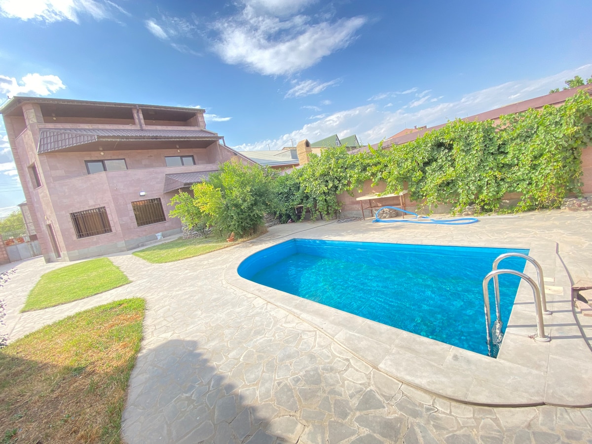 Дом находится в духовном центре Армении, в г. Эчмиадзин. В пешей доступности: Главный храм Армении - святой Эчмиадзин, городской рынок, супермаркеты, рестораны, парки, скверы. В г. Ереван (Центр) можно поехать на ТС 20-25 минут езды, расстояние (18 км) Описание дома: 1-й этаж: Прихожая, гостевая комната, спальная, кухня, ванная комната, санузел, терраса, внутренний двор с бассейном 8м*4м, шашлычная зона, сад с фруктовыми деревьями. 2-й этаж: 5 комнат, 2 санузла , прихожая с кухней и терраса.