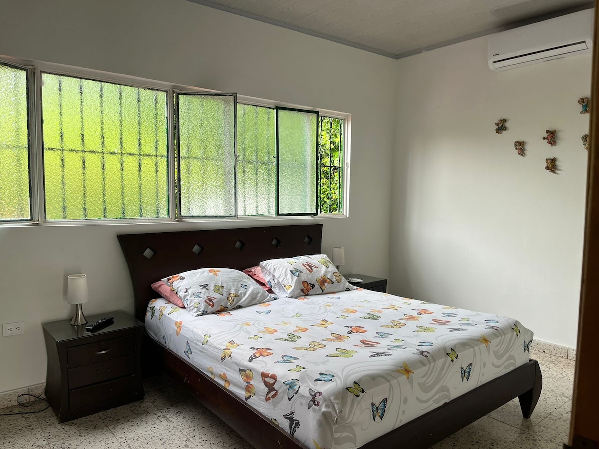 🏡✨ Relájate con toda la familia en este lugar tranquilo y privado. Casa de dos niveles con 6 habitaciones y 3 baños; todas las camas cuentan con colchones semiortopédicos y almohadas cómodas. Parqueadero privado para hasta 5 carros, ventiladores en cada espacio y aire acondicionado en la habitación principal. Balcones con vista a la piscina privada, que cuenta con baño y duchas, además de caballo para cabalgar y moto para domicilios. 👉 Reserva y disfruta una estadía cómoda y especial