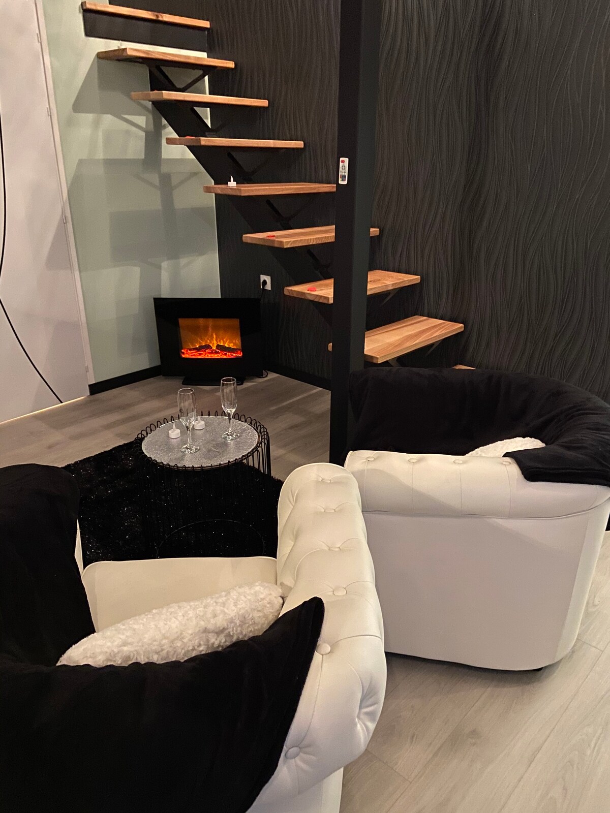 Ở vùng nông thôn cách xa vẻ ngoài, hãy đến và tận hưởng nơi nghỉ ngơi lãng mạn của chúng tôi rộng 35 m2 với sân thượng, không gian đỗ xe. Chúng tôi cung cấp cho bạn một ca cao thực sự để gặp gỡ lúc 2 giờ với jacuzzi riêng trong giường lớn không giới hạn, khu vực ngồi nhỏ với lò sưởi điện