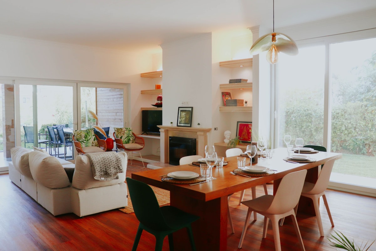 Chào mừng bạn đến với khu nghỉ dưỡng Caparica tuyệt vời, một ngôi nhà 3 phòng ngủ có thiết kế đầy nắng chỉ cách bãi biển 10 phút. Hoàn hảo cho các gia đình, người làm việc từ xa hoặc các nhóm nhỏ tìm kiếm ánh nắng mặt trời, biển và phong cách. Với cửa sổ từ sàn đến trần, 3 giường thanh bình, 3 phòng tắm và hồ bơi riêng, nơi đây lý tưởng để thư giãn hoặc làm việc từ xa. Không gian sống không gian mở tự hào có trần nhà cao, tông màu êm dịu và đồ nội thất được tuyển chọn. Một nơi nghỉ ngơi thực sự ven biển.