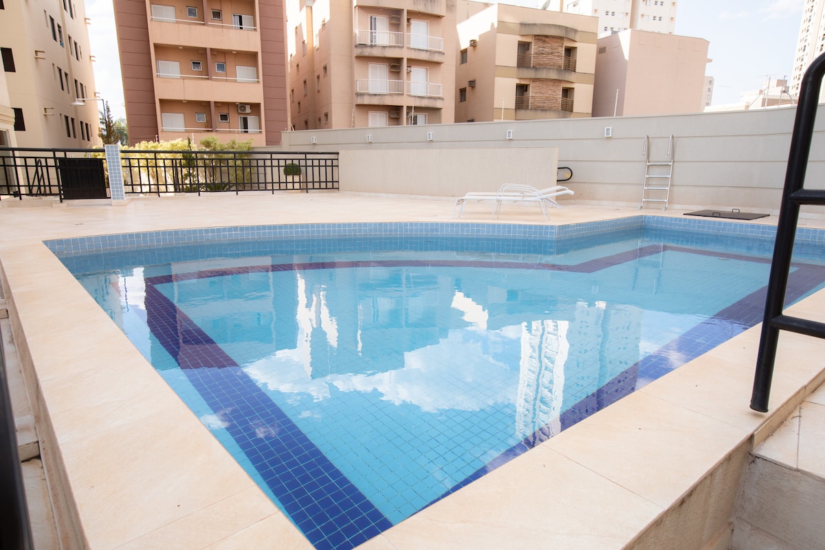 Studio aconchegante, localizado a 5 min do Shopping Iguatemi e Ribeirão Shopping perto do Novo Mercadão da Cidade, farmácias , supermercado, posto gasolina , padarias , pizzaria e uma excelente sorveteria gourmet. O condomínio oferece portaria virtual 24 horas, estacionamento para 1 carro de médio porte, lavanderia compartilhada no Lob e um espaço para relaxar e desfrutar momentos de tranquilidade. Decorado com atenção aos detalhes para um ambiente acolhedor para que você se sinta em casa.