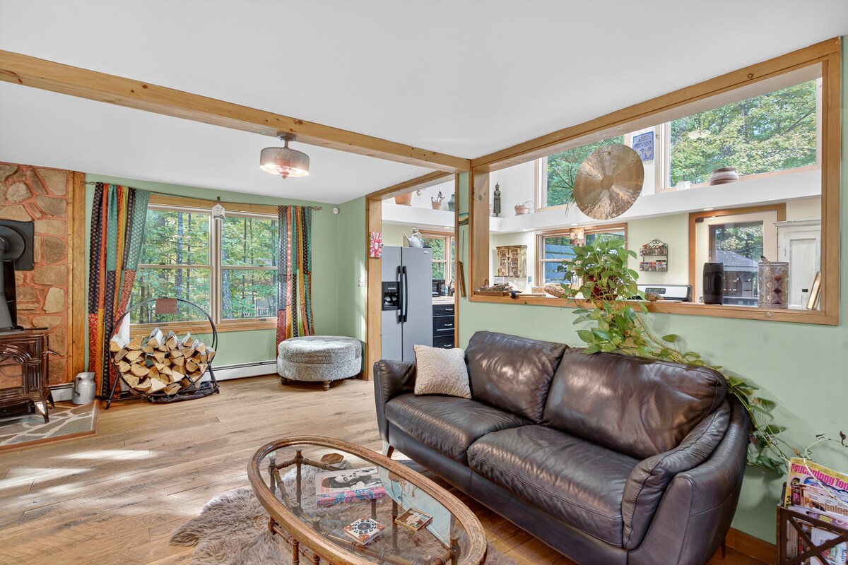 Recently featured in Vogue as one of “The Best Airbnbs in Upstate New York for a Weekend Away From the City” - A cozy getaway upstate on 2 acres of beautiful Catskill land. It's only 8 minutes to Woodstock, 5 minutes to the village of Saugerties, and there’s hiking, skiing and swimming within minutes. The entire second floor has been newly renovated including the bathroom and both bedrooms. The first floor is an open layout with kitchen, living and dining areas leading to the backyard deck.