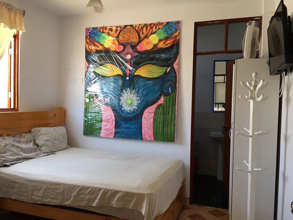 Tận hưởng Punta Hermosa trong nhà của chúng tôi! Phòng này có không gian rộng rãi và ấm cúng với lối vào riêng cho thời gian lưu trú của bạn. Chúng tôi có một giường queen, tủ lạnh nhỏ, phòng tắm đầy đủ, TV với Netflix và tầm nhìn đẹp. Nằm trong một khu vực yên tĩnh và an toàn để nghỉ ngơi, cách bãi biển 5 phút đi bộ và rất trung tâm, nơi bạn sẽ tìm thấy mọi thứ bạn cần như cửa hàng và nhà hàng. Chúng tôi chờ bạn tại Casa Danda!