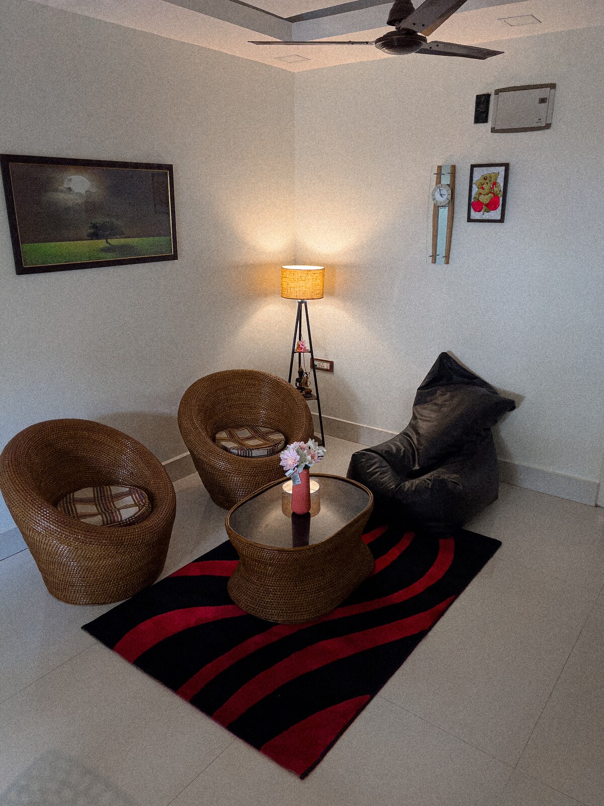 -Well ventilated with air purifying indoor plants -Beautiful outdoor space right outside amidst greenery and mountains, perfect for walks -Ample parking space -Whole property is lush green and fresh aired -Terrace access -Super fast 100 MBPS Wi-Fi -Power backup -Scores of amenities like AC, smart TV with OTT subscription, a fully functional kitchen, electric kettle, refrigerator, etc -Ambient lighting in every room, perfect for photo shoots -Card games