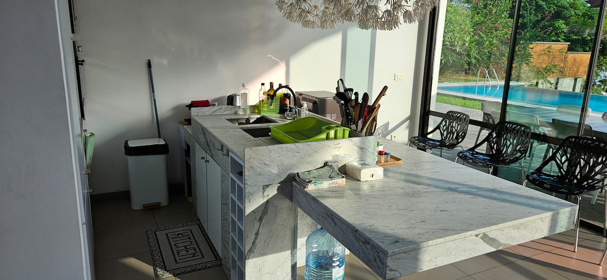 Về nhà, thư giãn và tận hưởng một ngôi nhà hiện đại mới với cửa sổ và sân thượng lớn, hồ bơi riêng, vườn, khu vực bi sắt, boong tàu, bãi đỗ xe trong khuôn viên. Kiến trúc hiện đại của tòa nhà nổi bật như độc đáo. Nội thất làm cho bạn cảm thấy như ở nhà, với sự kết hợp giữa đồ nội thất địa phương hiện đại và truyền thống. Đã bao gồm bữa sáng. Đồ uống, bữa trưa hoặc bữa tối cũng có thể được cung cấp theo yêu cầu. Wifi và truyền hình vệ tinh miễn phí. Sân thượng với quầy bar cho tầm nhìn độc quyền ra khu rừng đầm phá.